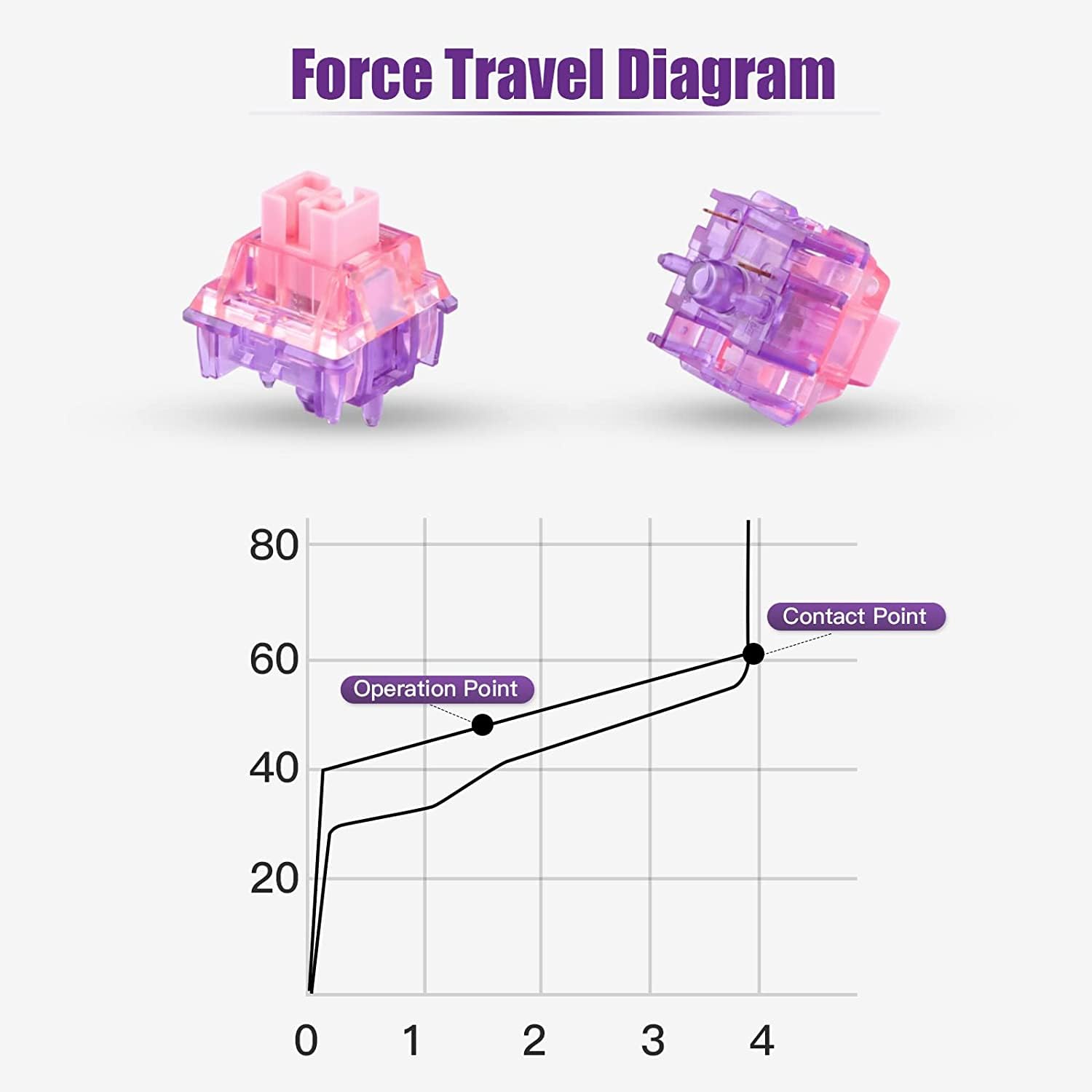 【Compatible with MX Structural Key Cap】EPOMAKER Flamingo switch is designed with universal MX construction to fit many key caps with (X) cross bars. This greatly improves compatibility and allows you to change the switch when you want to change your keyboard