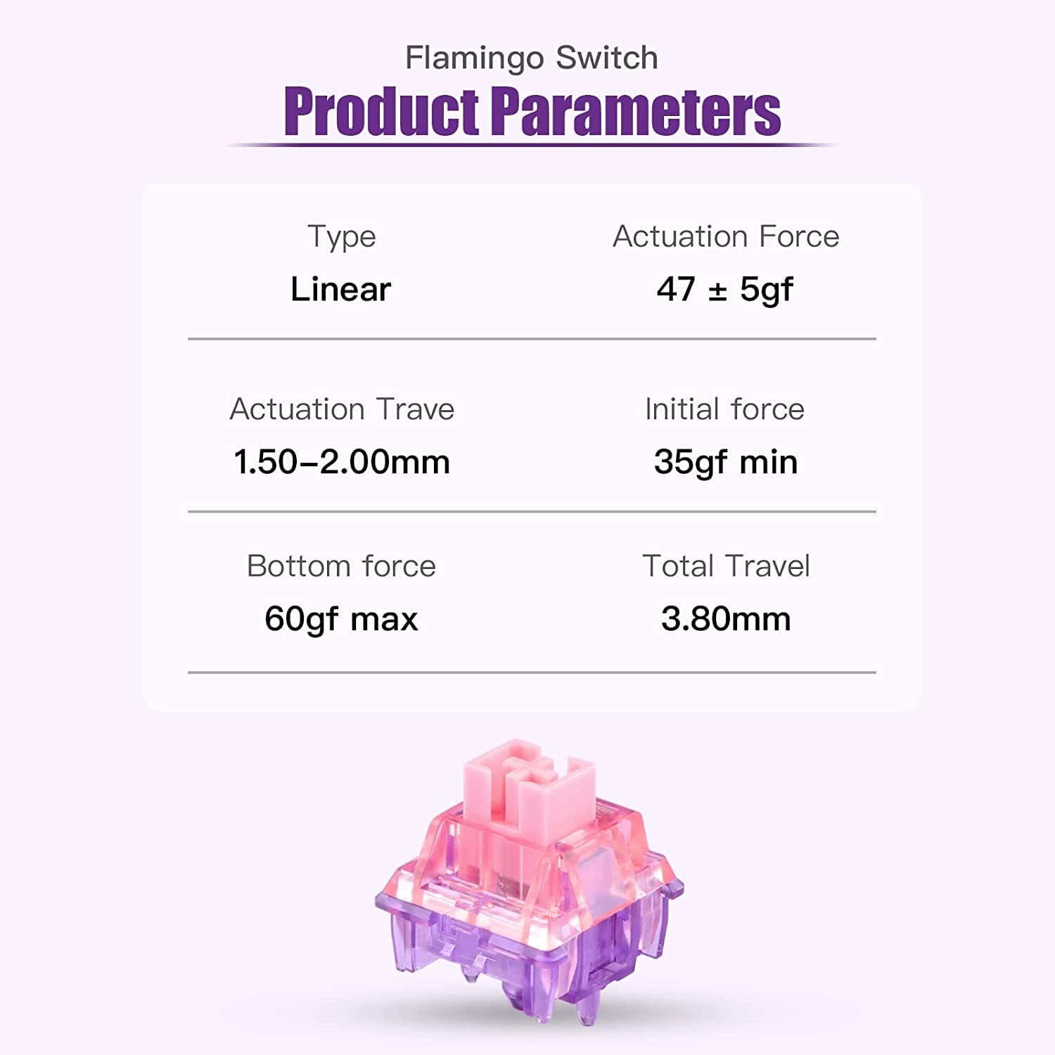 [EPOMAKER Flamingo Linear Switch] Flamingo's most obvious and attractive features are in its vibrant colors. Flamingo Switch Set was born from this! Each button features a pale pink housing that reflects the source of the flamingo