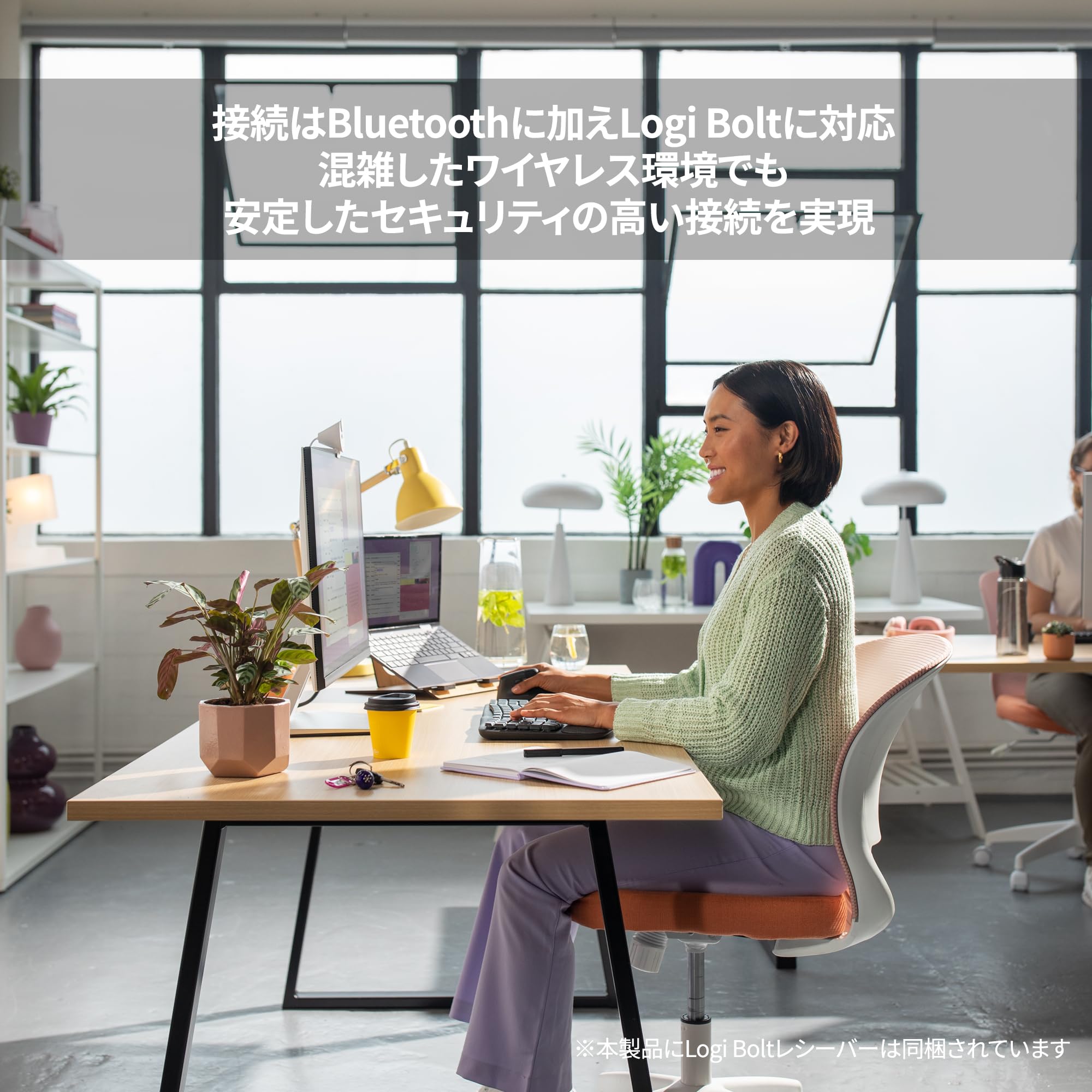 Bluetoothとロジクール独自の「Logi Bolt」で接続 ※本製品にLogi Boltレシーバーは同梱されています