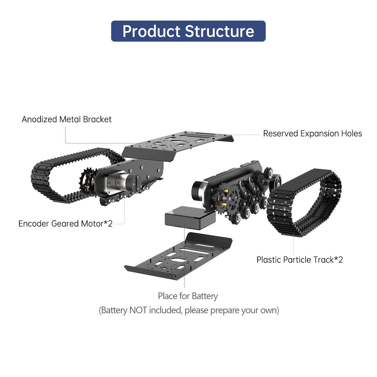 【Powerful Robot Tank Bracket】The body is made of aluminum alloy and the surface is anodized for an exquisite appearance. The top layer is easy to remove and DIY development