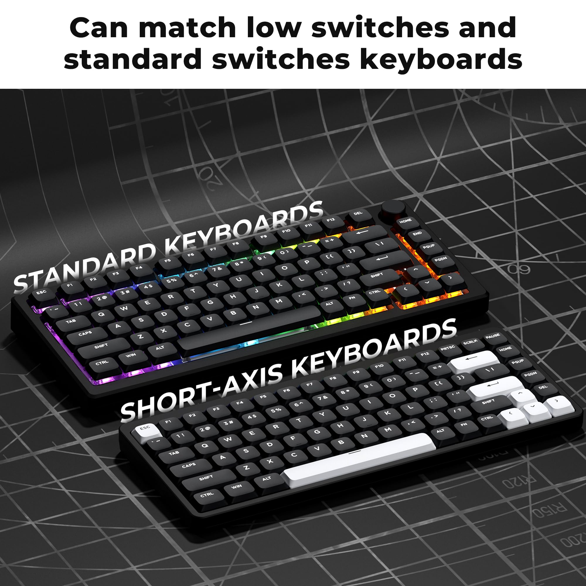 【Low Profile Key Cap】The shaft of this key cap is shorter than the traditional height key cap, but also fits traditional height switches and low height switches. Low profile key cap is designed to provide the ultimate typing and gaming experience during keyboard operation