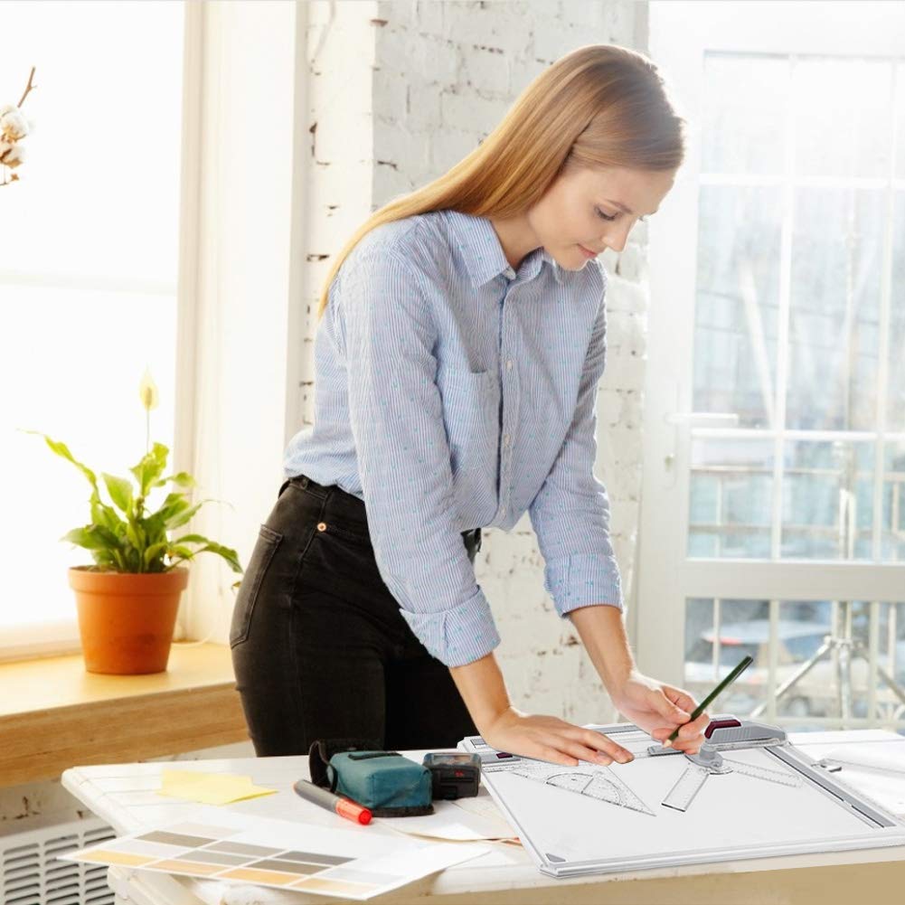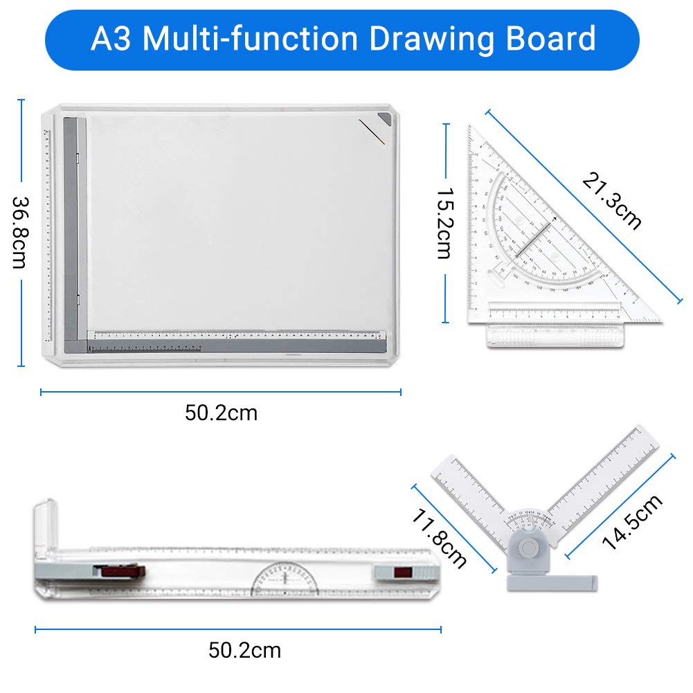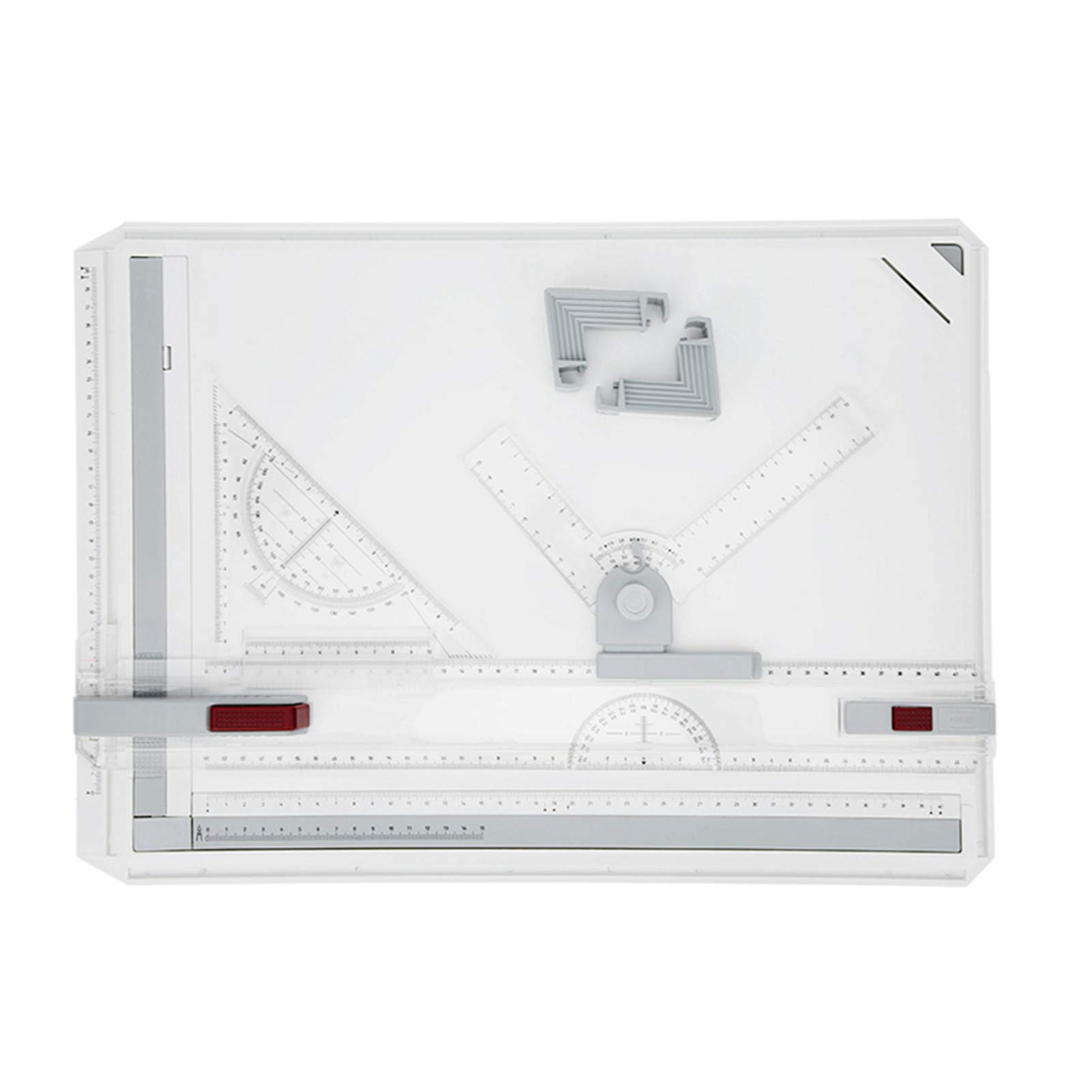 Parallel straightedge with STOP and locking/unlocking action, marked in centimeters on both edges