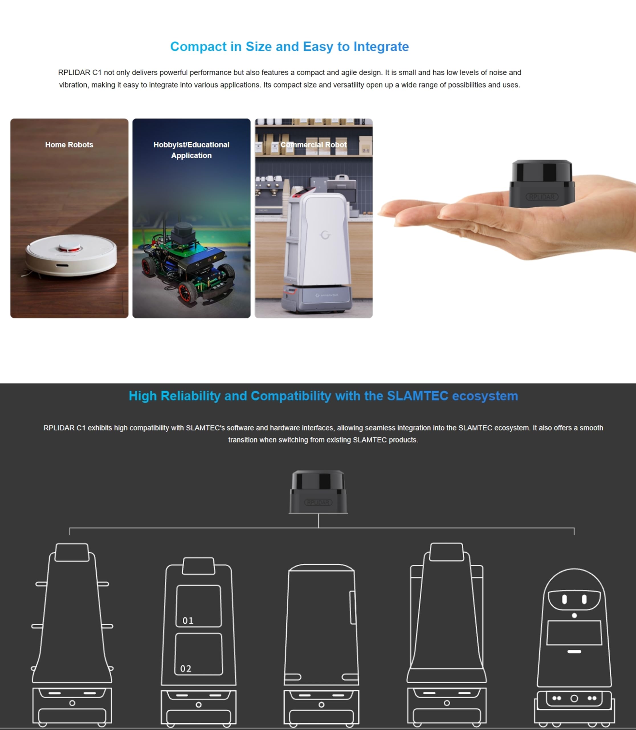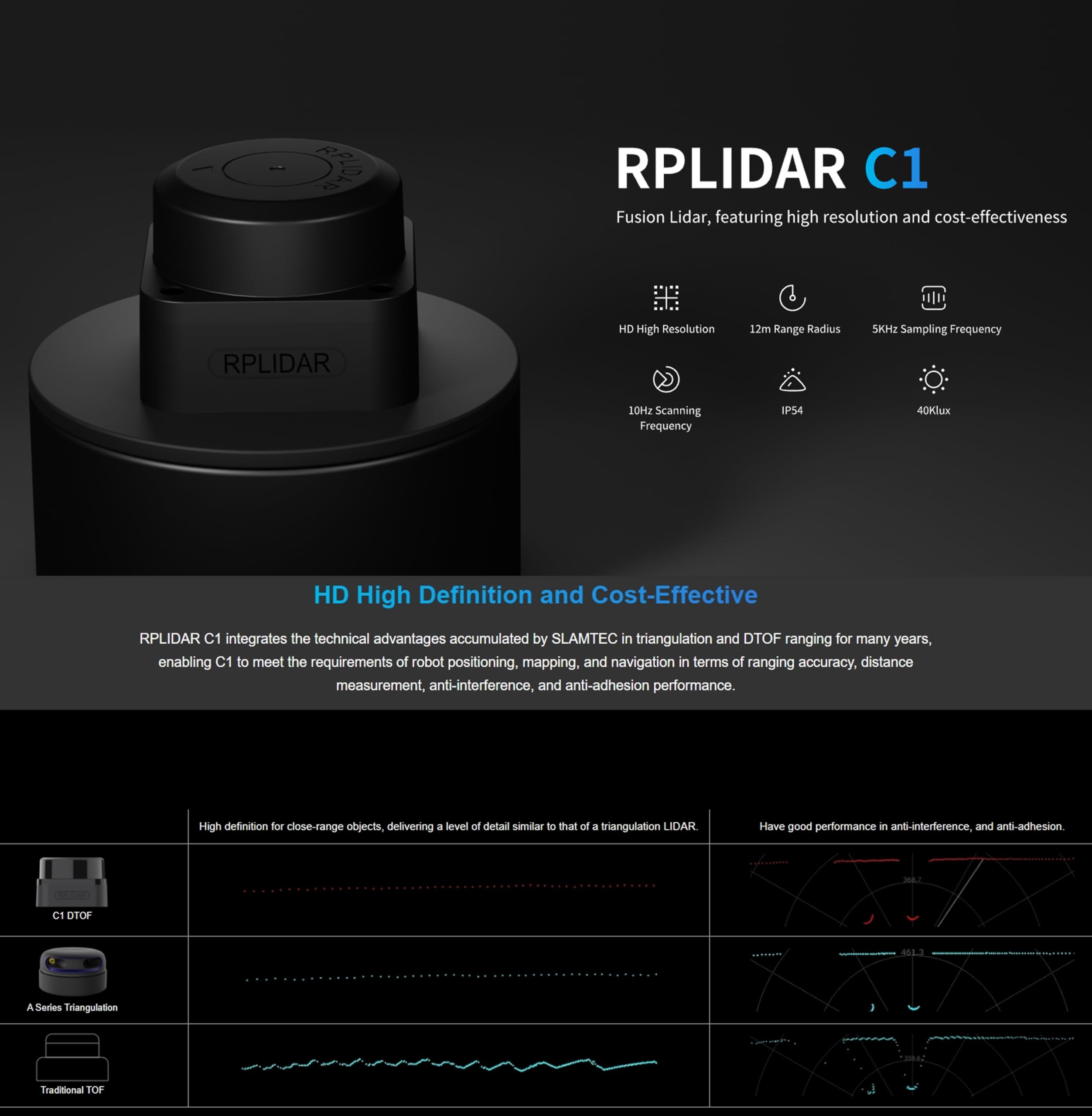 - Package contents: RPLIDAR C1 Lidar Combo Set x1