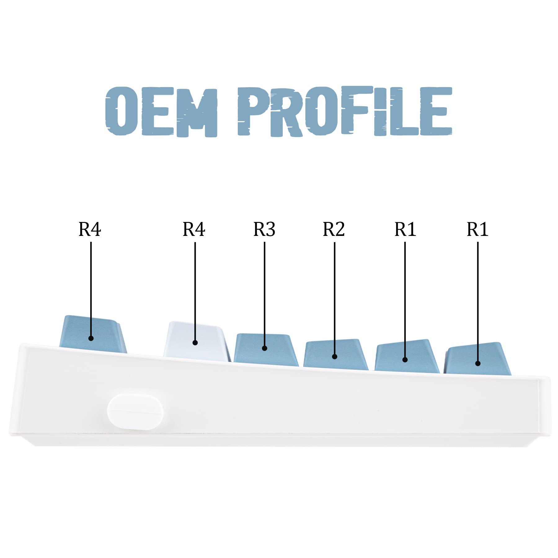 OEM profile keycaps are slightly taller compared to Cherry profile keycaps. And has a larger finger contact area.