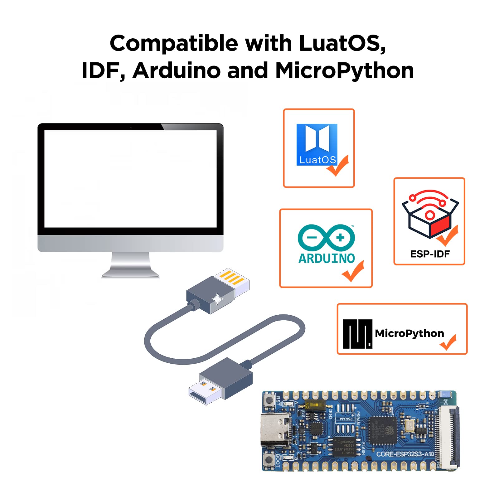 LuatOS 3 PCS USB C ESP32 S3 Development Board, ESP32-S3 MCU with 8MB PSRAM, 16MB Flash and 512K SRAM, ESP32 Board with WiFi, Bluetooth, On-Board CH343P and Rich Interfaces, Arduino IDE Compatible