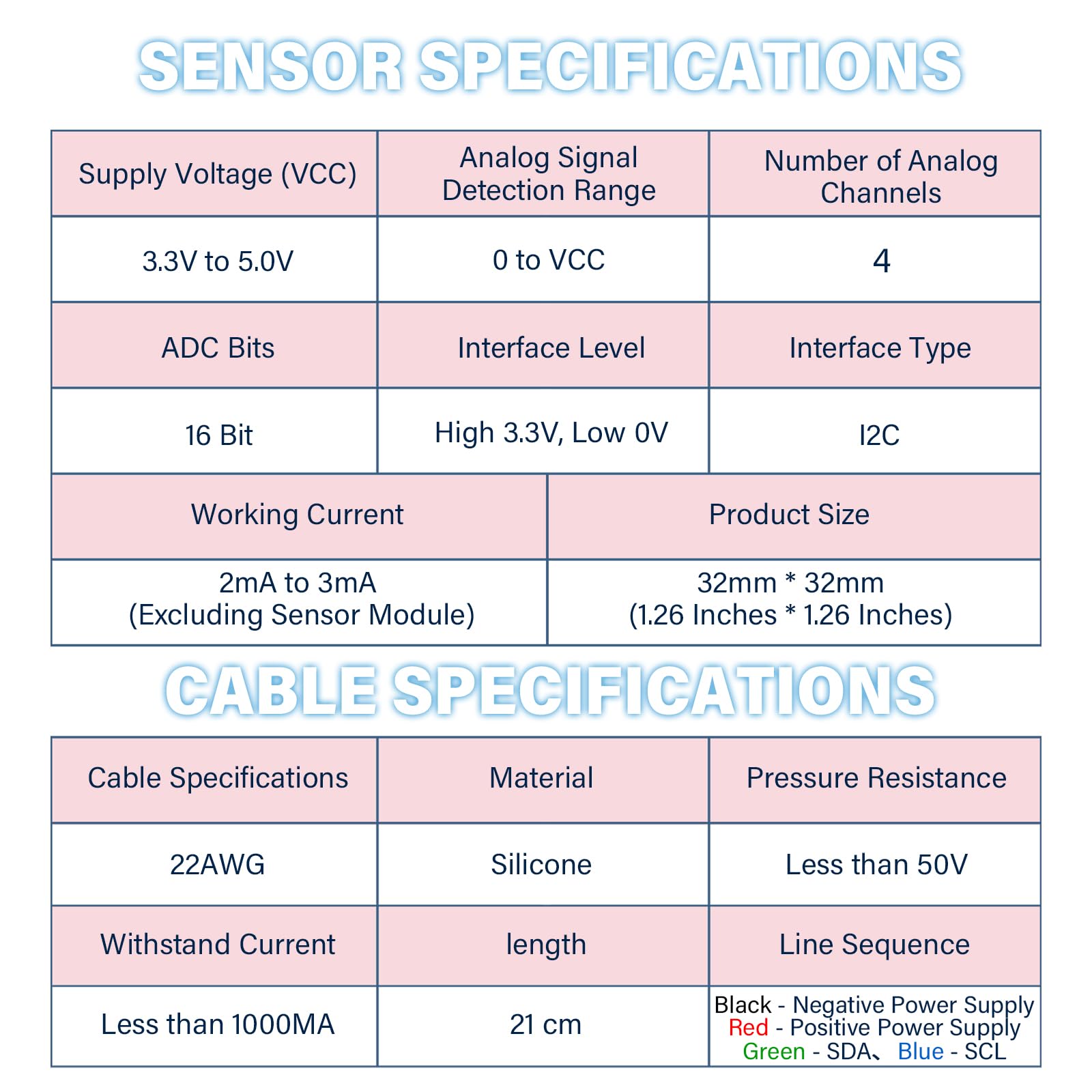 One AD module can read 4 channels of analog signals. Due to the onboard I2C address selection switch, it supports the cascade of 2 AD modules and reads 8 channels of analog signals, which is sufficient to meet the needs of various scenarios.