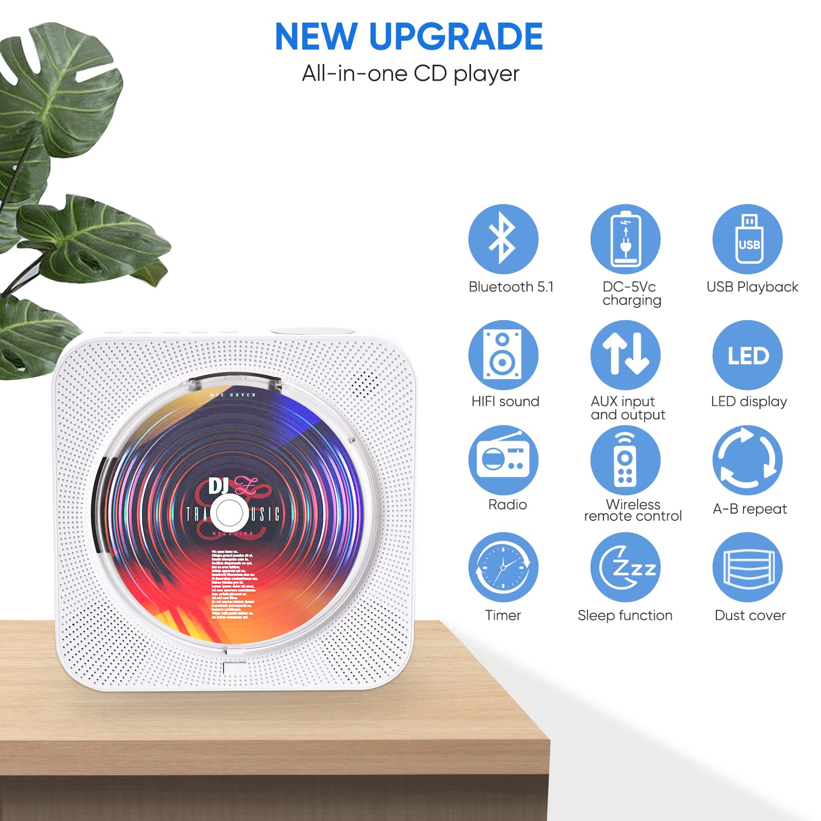 💽【Bluetooth Version 5.1 / Remote Control】This desktop CD player can receive Bluetooth signals from your Bluetooth devices such as mobile phones/laptops/Airpods and listen to music from CDs/USB/TF cards/FM. If you want to enjoy cds via your Bluetooth earphones or Bluetooth speakers, please don’t worry, this small cd player can also make it.