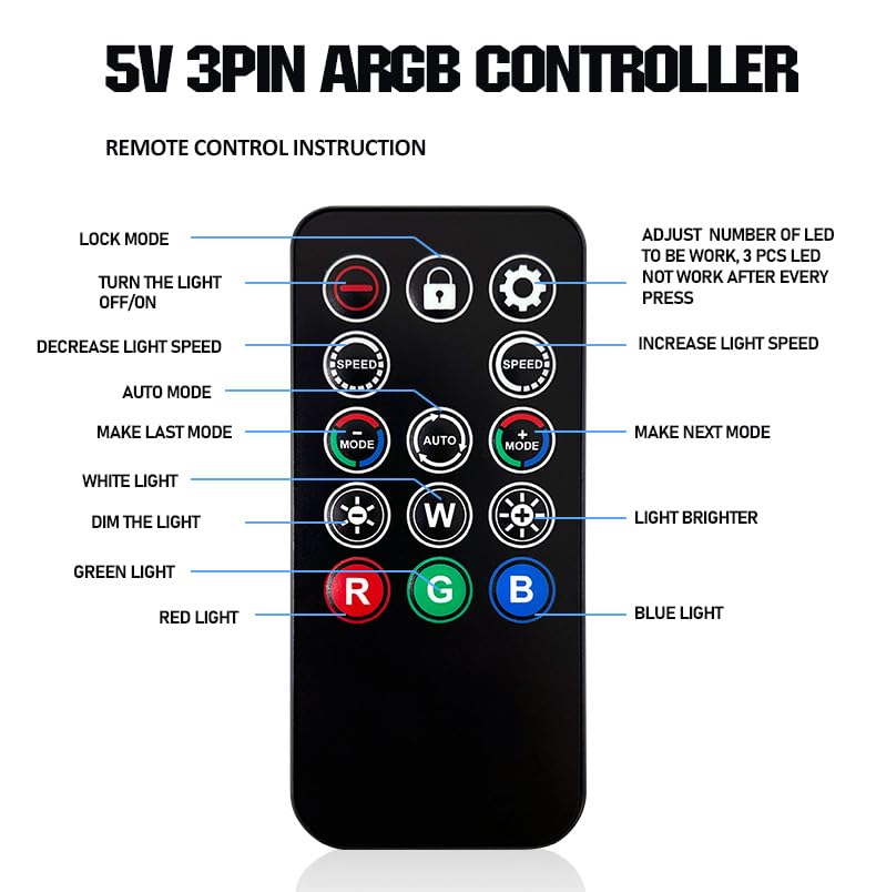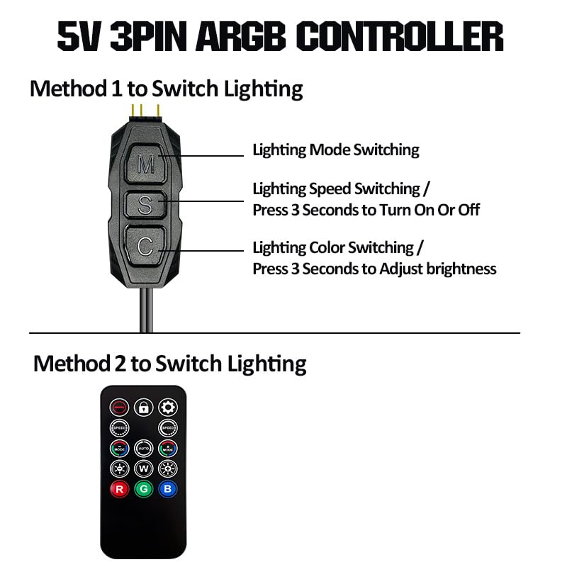 【Remote Control】 This argb hub can control the lighting effect manually, or use the remote control to achieve supporting monochrome, rainbow, trotting lights, jumping and other modes.