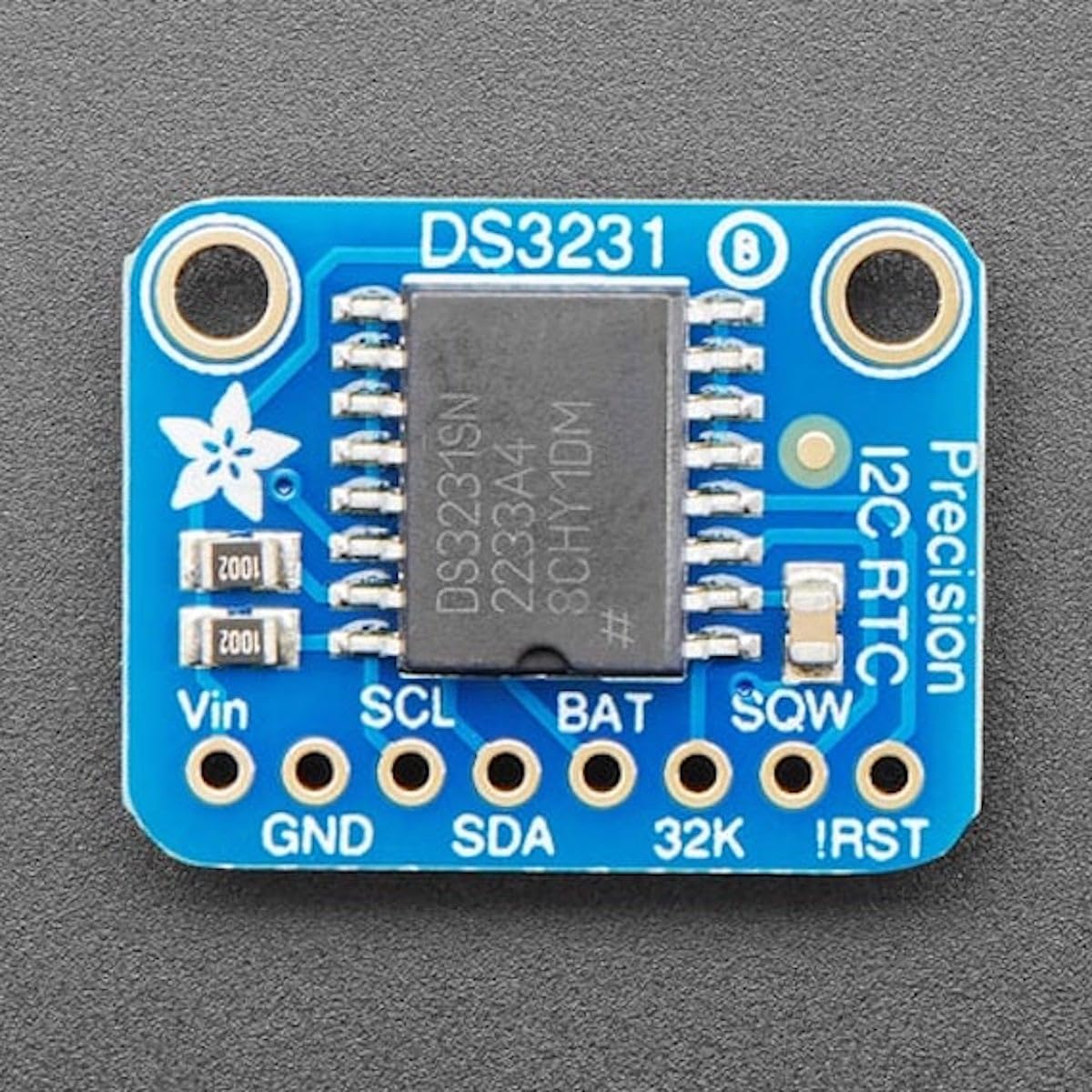 The datasheet for the DS3231 explains that this part is an "Extremely Accurate I²C-Integrated RTC/TCXO/Crystal". And, hey, it does exactly what it says on the tin! This Real Time Clock (RTC) is the most precise you can get in a small, low power package. Most RTCs use an external 32kHz timing crystal that is used to keep time with low current draw. And that's all well and good, but those crystals have slight drift, particularly when the temperature changes (the temperature changes the oscillation frequency very very very slightly but it does add up!) This RTC is in a beefy package because the crystal is inside the chip! And right next to the integrated crystal is a temperature sensor. That sensor compensates for the frequency changes by adding or removing clock ticks so that the timekeeping stays on schedule. This is the finest RTC you can get, and now we have it in a compact, breadboard-friendly breakout. With a coin cell (required for battery-backup capabilities) plugged into the back, you can get years of precision timekeeping, even when main power is lost. Great for datalogging and clocks, or anything where you need to really know the time. Item Specifics Fully assembled and tested breakout 1 - small header Size: 23mm x 17.6mm x 7.2mm / 0.9" x 0.7" x 0.28" Weight: 2.1g Some soldering required. CR1220 coin battery not included