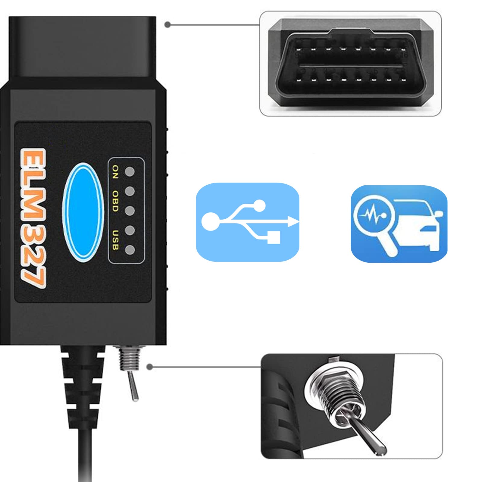 ELM327 FORScan OBD2 adapter is a vehicle code reader, ELM327 scanner, clear check engine light, FORScan Flash for Ford F150 F250 diagnostic programming scan tool, the adapter has the reliable advantage of USB cable connection and version 1.5 hardware to avoid data corruption and packet loss. MS-CAN HS-CAN switches operate at speeds up to 500 kbits per second