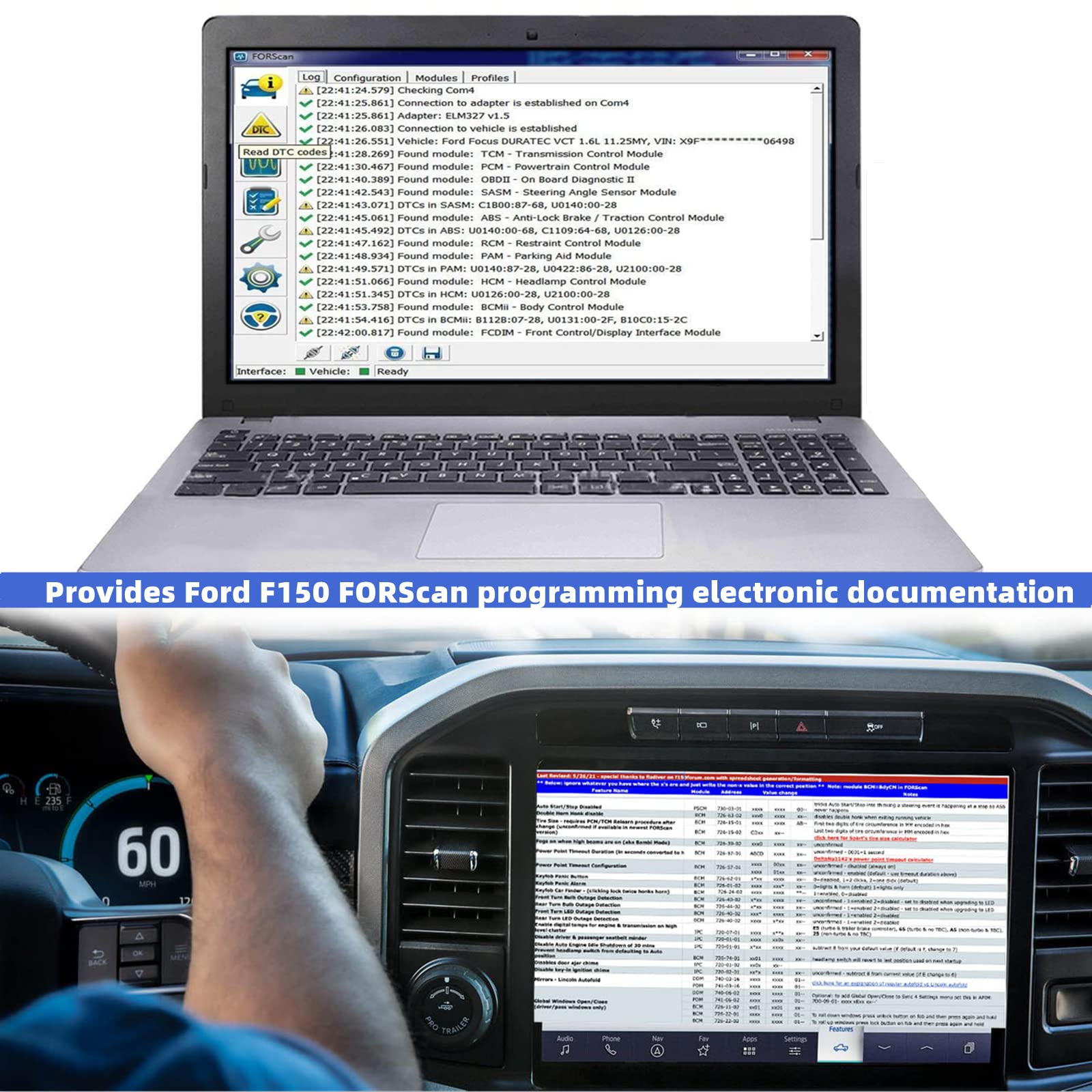 FORScan enables hidden features and disables existing features without visiting a dealer: including F150 Hybrid Fake Engine Noise, Backup Buzzer, Start-Stop/Discover Global Window Functions/Safe Idle/Vertical Parking/Trailer Brake Controller/Disable Dual Horn horn/disable door ajar chime/mirror/tire size correction and more. FORScan function is only for Ford, we provide you with Ford F150 FORScan programming electronic file