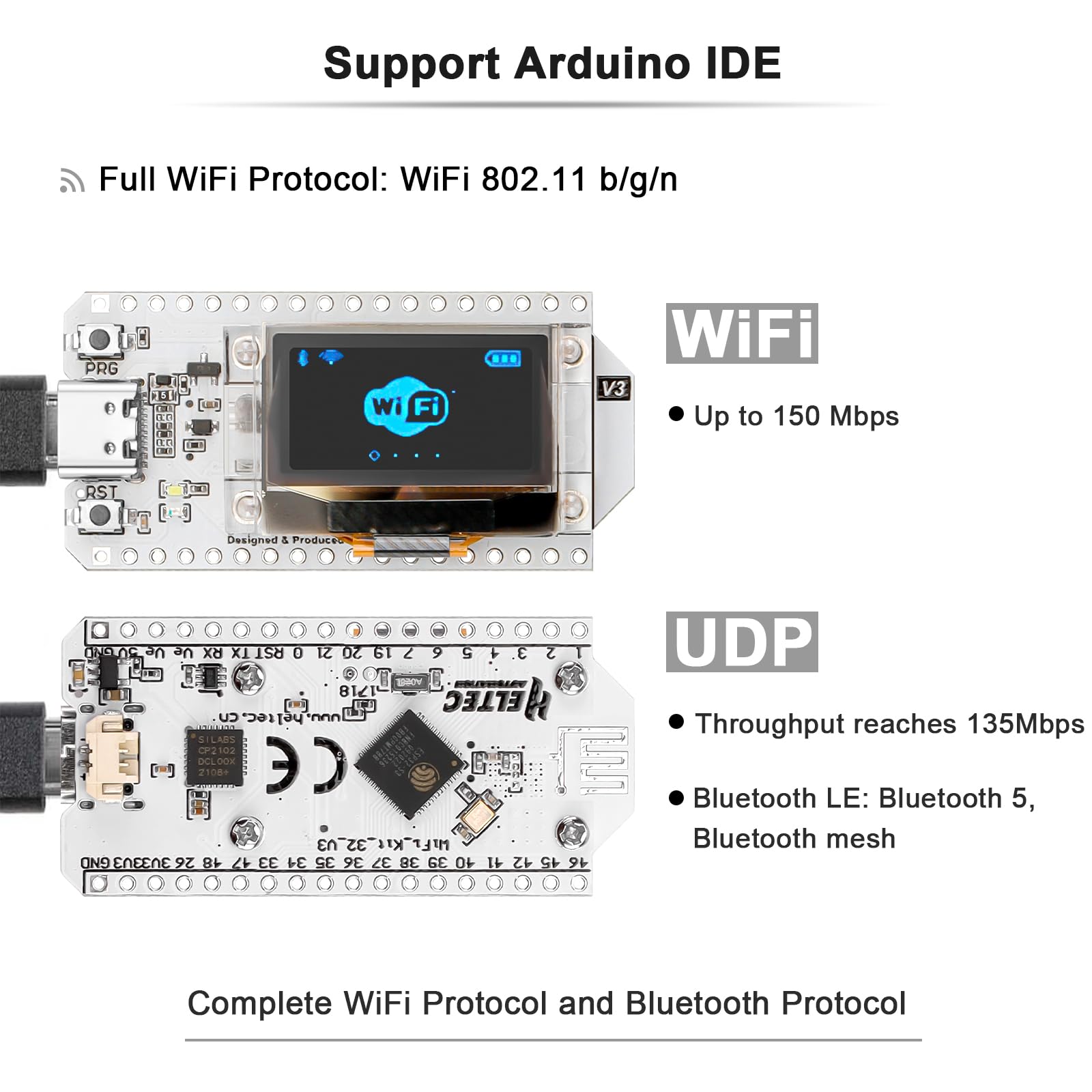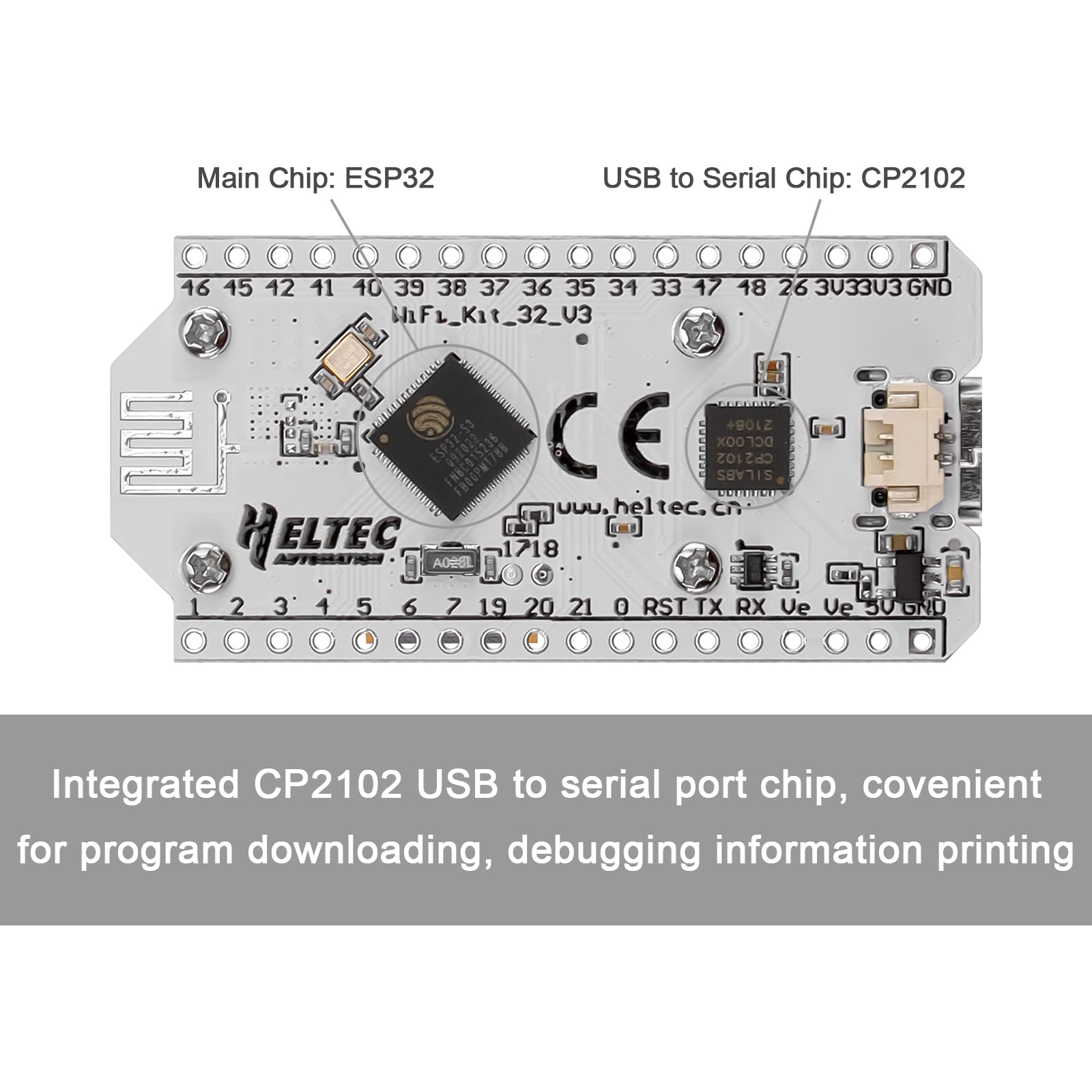 WiFi Kit 32 (V3) is a classic IoT development board. It’s a highly integrated product based on ESP32(including WiFi and BLE), Li-Po battery management system, 0.96” OLED are also included. It’s the best choice for smart cities, farms homes and IoT makers