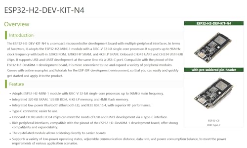 The ESP32-H2-DEV-KIT-N4 is an entry-level RISC-V microcontroller development board integrating Blue-too-th 5 and IEEE 802.15.4 (Zigbee 3.0 and Thread). it is compact in size and powerful, with multiple peripheral interfaces. Suitable for smart home, industrial automation, healthcare, consumer electronics and other applications.