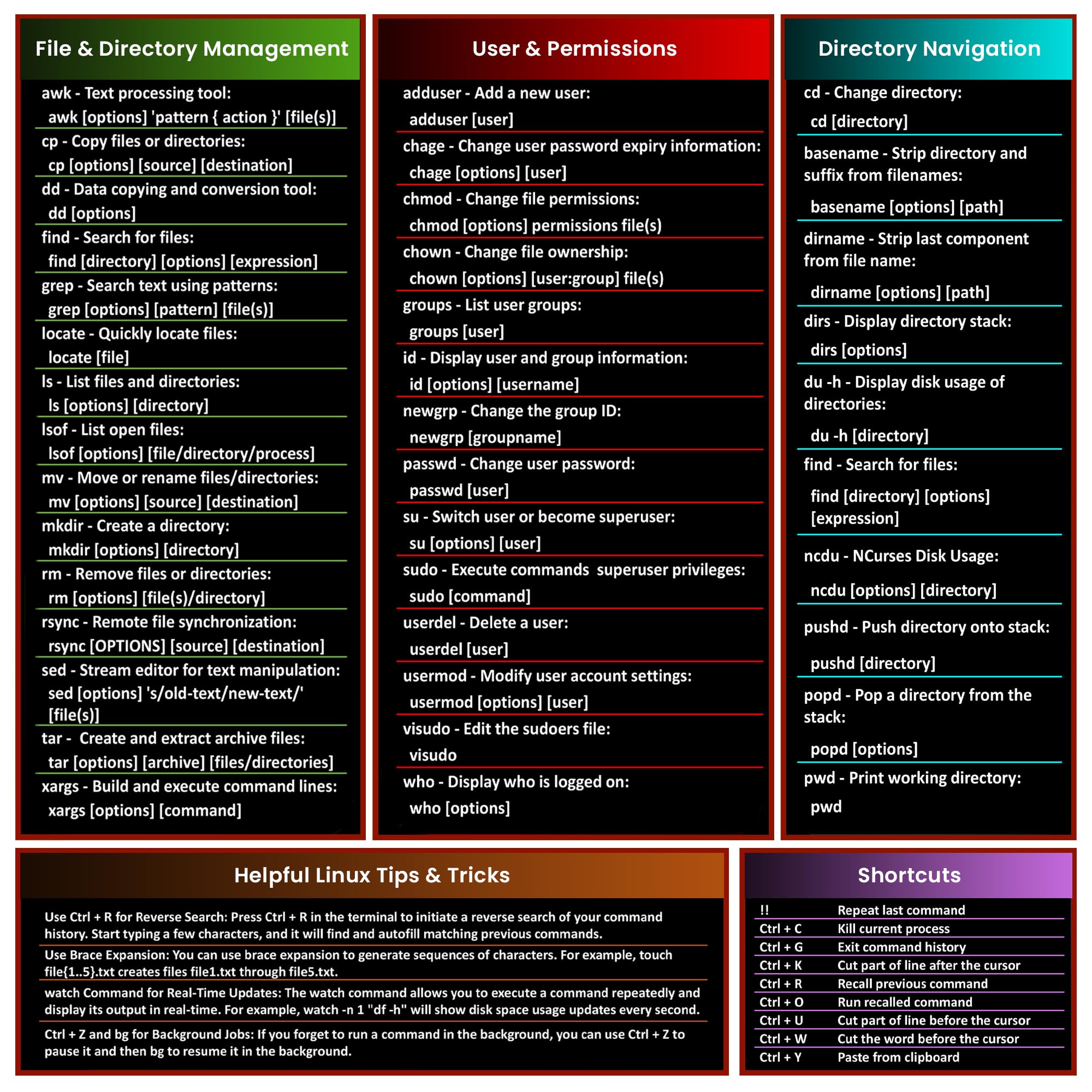 [ENHANCED FUNCTIONALITY]: Simplifies Linux CLI mastery with easily accessible commands and scripting references.