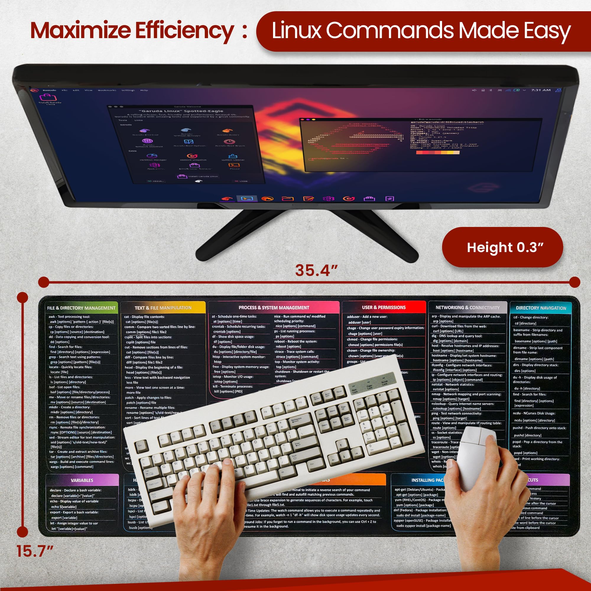 Discover the ultimate solution to streamline your workspace and boost productivity with our Linux Commands Desk Mat! Whether you're new to Linux or a seasoned user seeking a handy and comprehensive reference, this desk mat offers swift solutions.