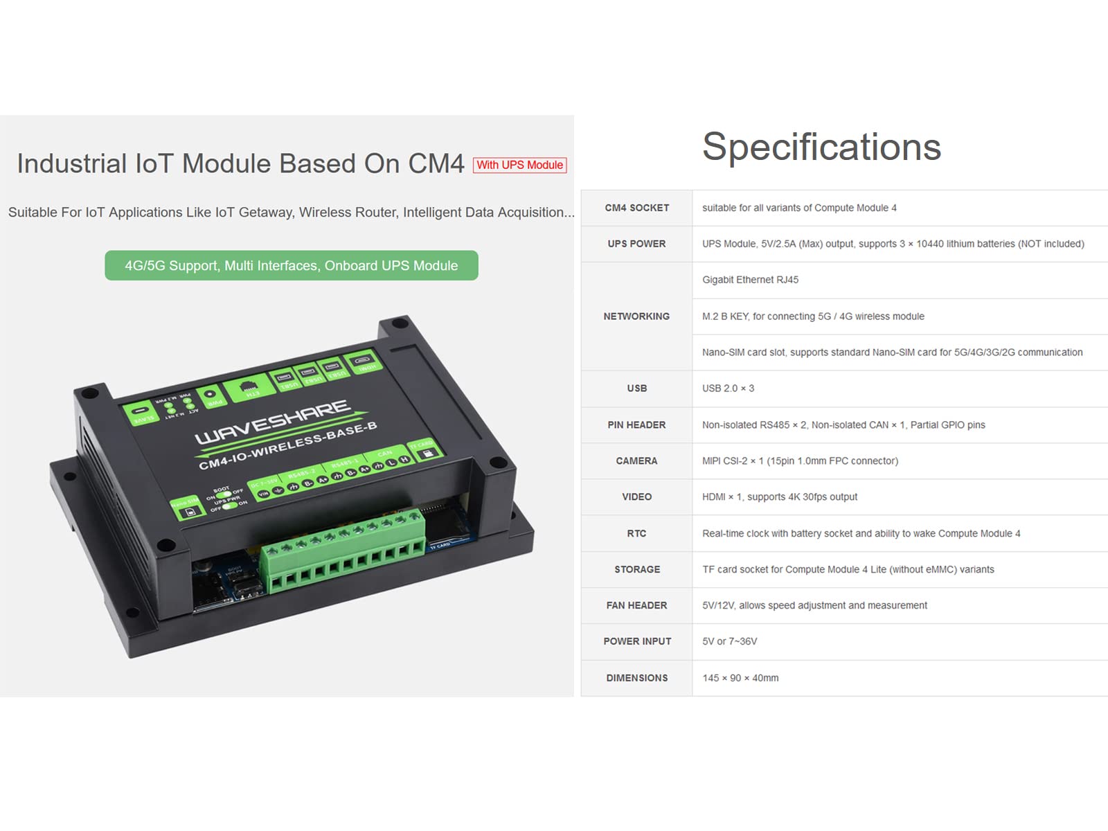 | Series | CM4 IoT 5G/4G Wireless Exp Module |