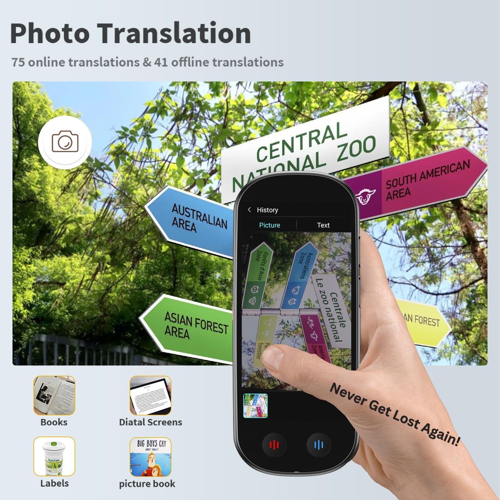 Smart Photo OCR with 8MP Camera: Instantly translate menus, documents, and signs with crystal-clear 8MP photo recognition. Supports 75 online and 41 offline photo languages for all-day convenience.