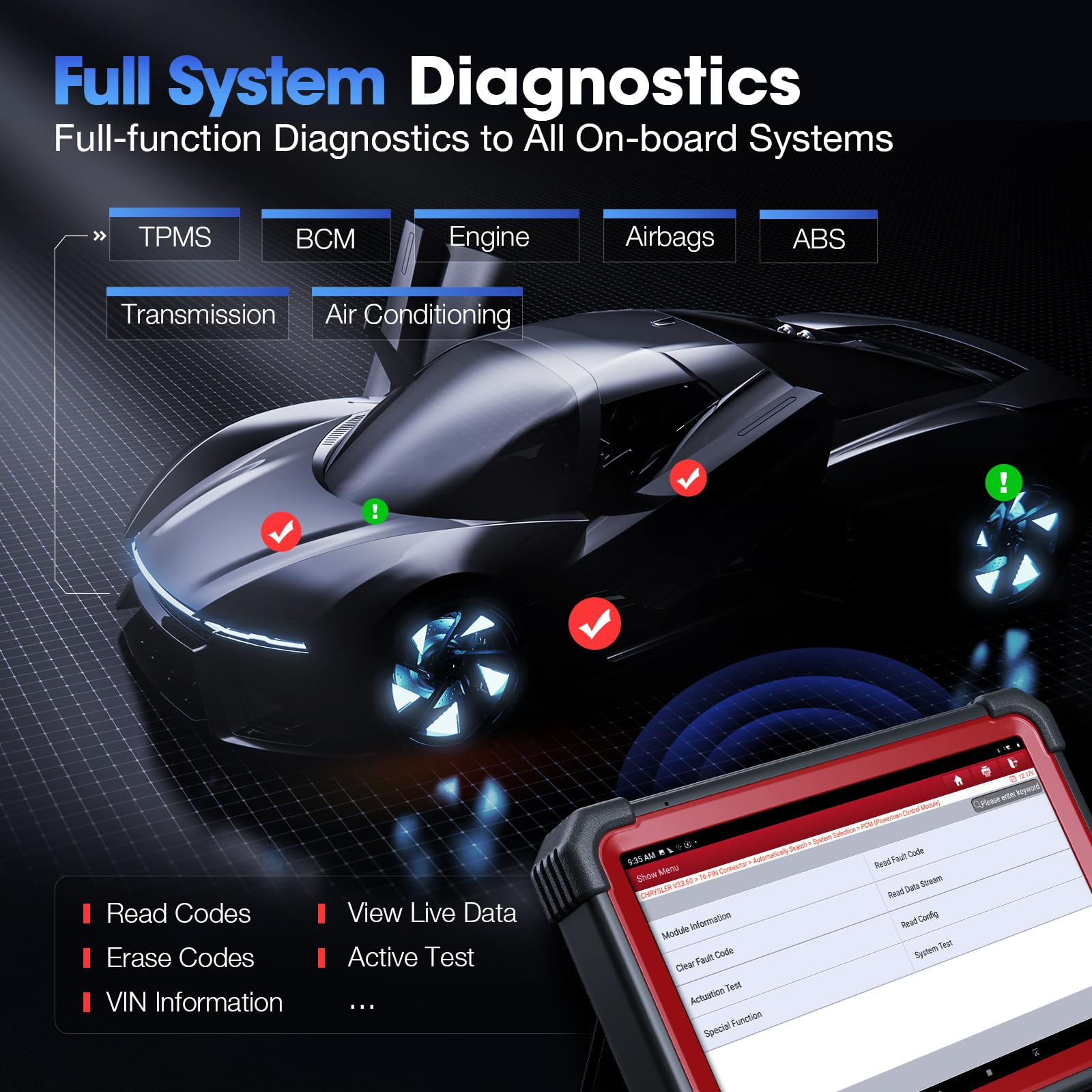 With this bidirectional scan tool, you don't need to struggle to disassemble individual on-board parts & ECUs to find a small problem. It also can be universally applied to all the vehicle systems like ABS, SRS, Engine, TPMS, BCM, Headlamps, Windscreen Wipers, Windows, Doors, Sunroof, Mirrors, for pinpointing problems within 5 minutes.
