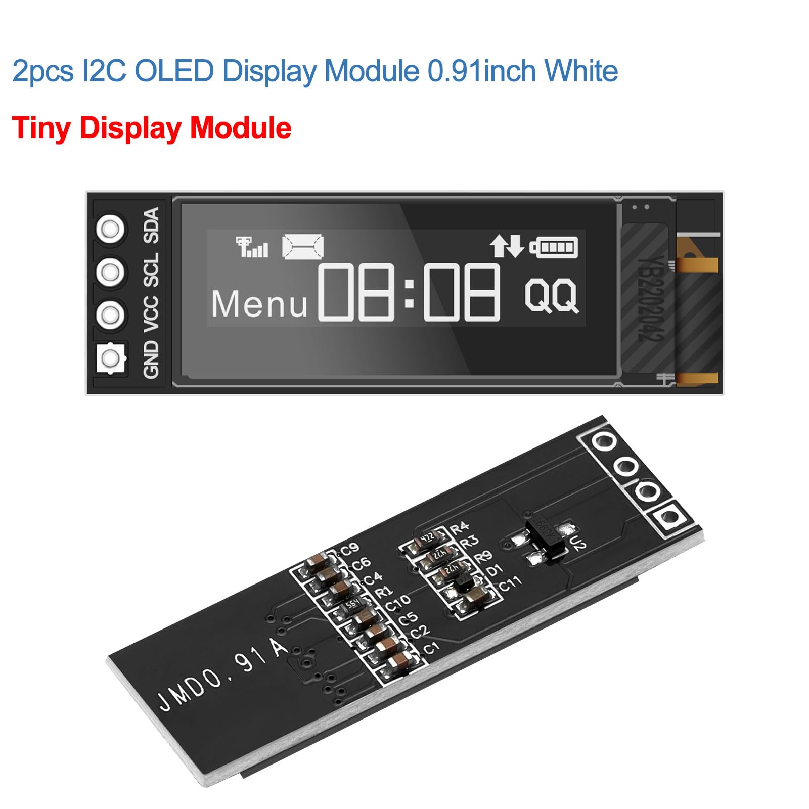 2 * 0.91 Inch I2C SSD1306 OLED White Display Module
