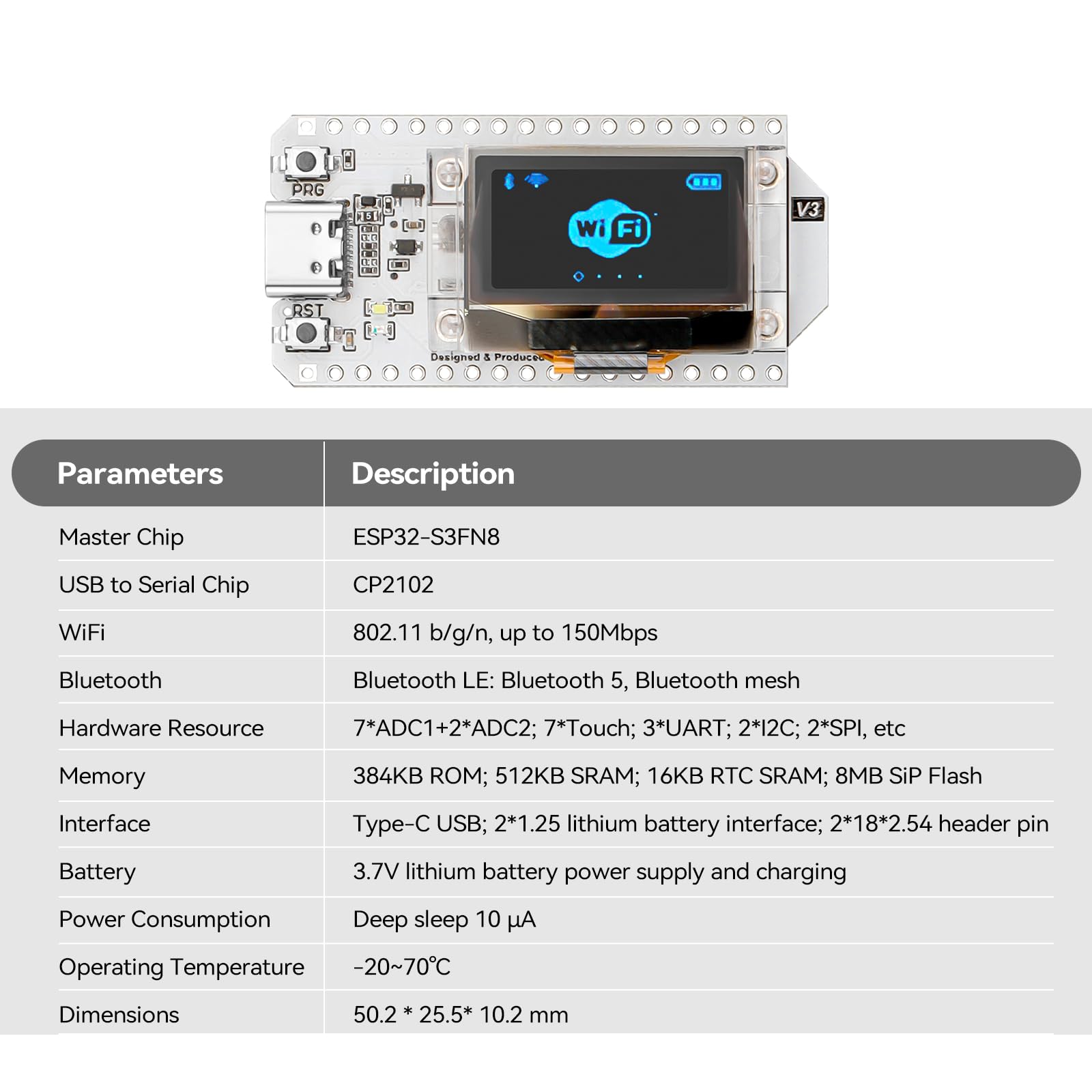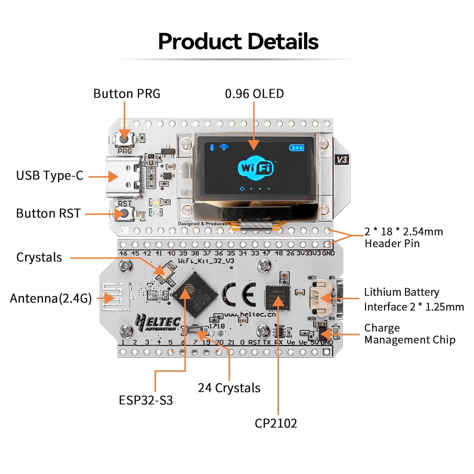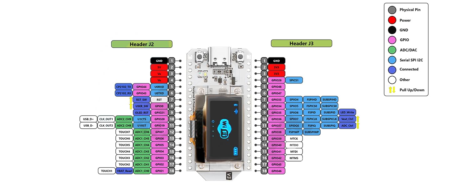 WiFi Kit 32 (V3) is a classic IoT development board. It’s a highly integrated product based on ESP32(including WiFi and BLE), Li-Po battery management system, 0.96” OLED are also included. It’s the best choice for smart cities, farms homes and IoT makers