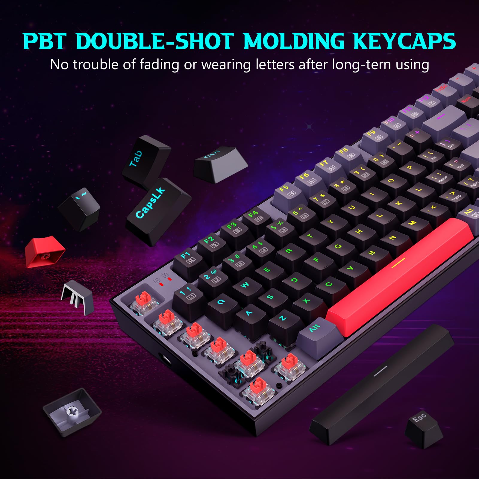 Redragon Mechanical Gaming Keyboard, Wired Mechanical Keyboard with 94 Keys, Programmable Macro Editing, Numeric Pad, Red Switches, Compact Keyboard Mechanical for Pc Mac Ipad, Black Gray