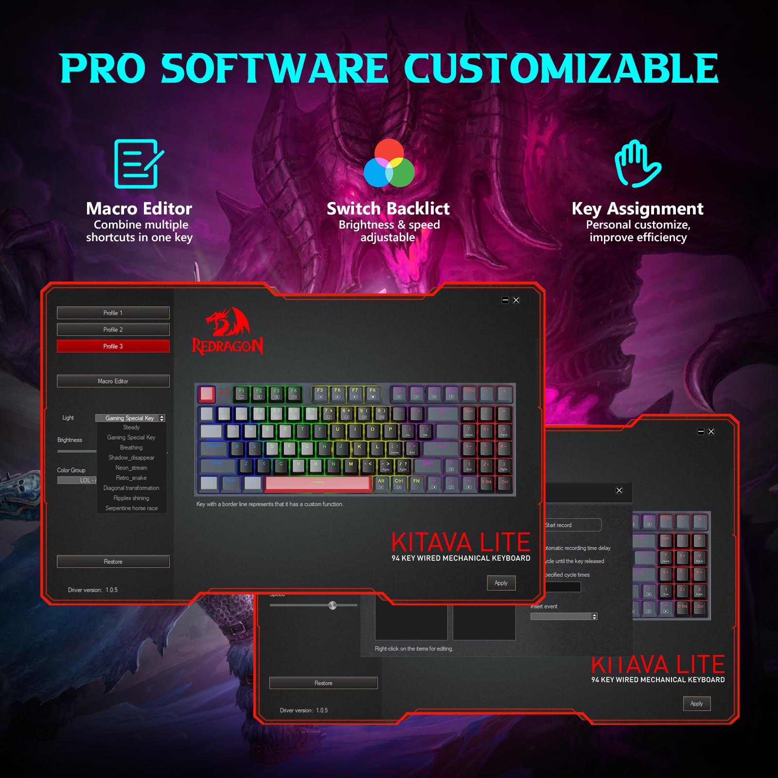 trên thế giới chọn lựa. Sản phẩm REDRAGON MECHANICAL GAMING KEYBOARD, WIRED MECHANICAL KEYBOARD WITH 94 KEYS, PROGRAMMABLE MACRO EDITING, NUMERIC PAD, RED SWITCHES, COMPACT KEYBOARD MECHANICAL FOR PC MAC IPAD, BLACK GRAY là sự lựa chọn hoàn hảo nếu