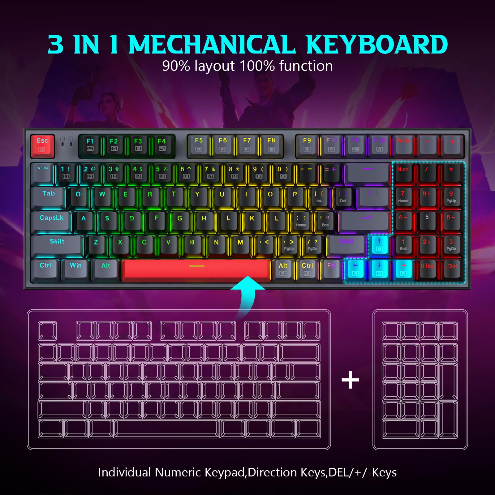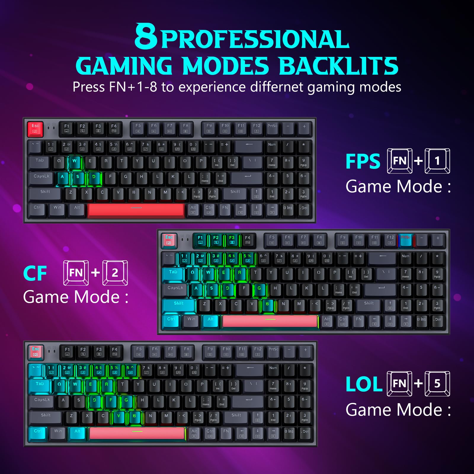 【INNOVATIVE 90% COMPACT LAYOUT】Adopts 94-key layout, this mechanical keyboard keeps essential numeric pad, arrow keys, del/+/-..., compact and save more space compared to standard size 87,104 keyboard. Dedicate for games and efficient working