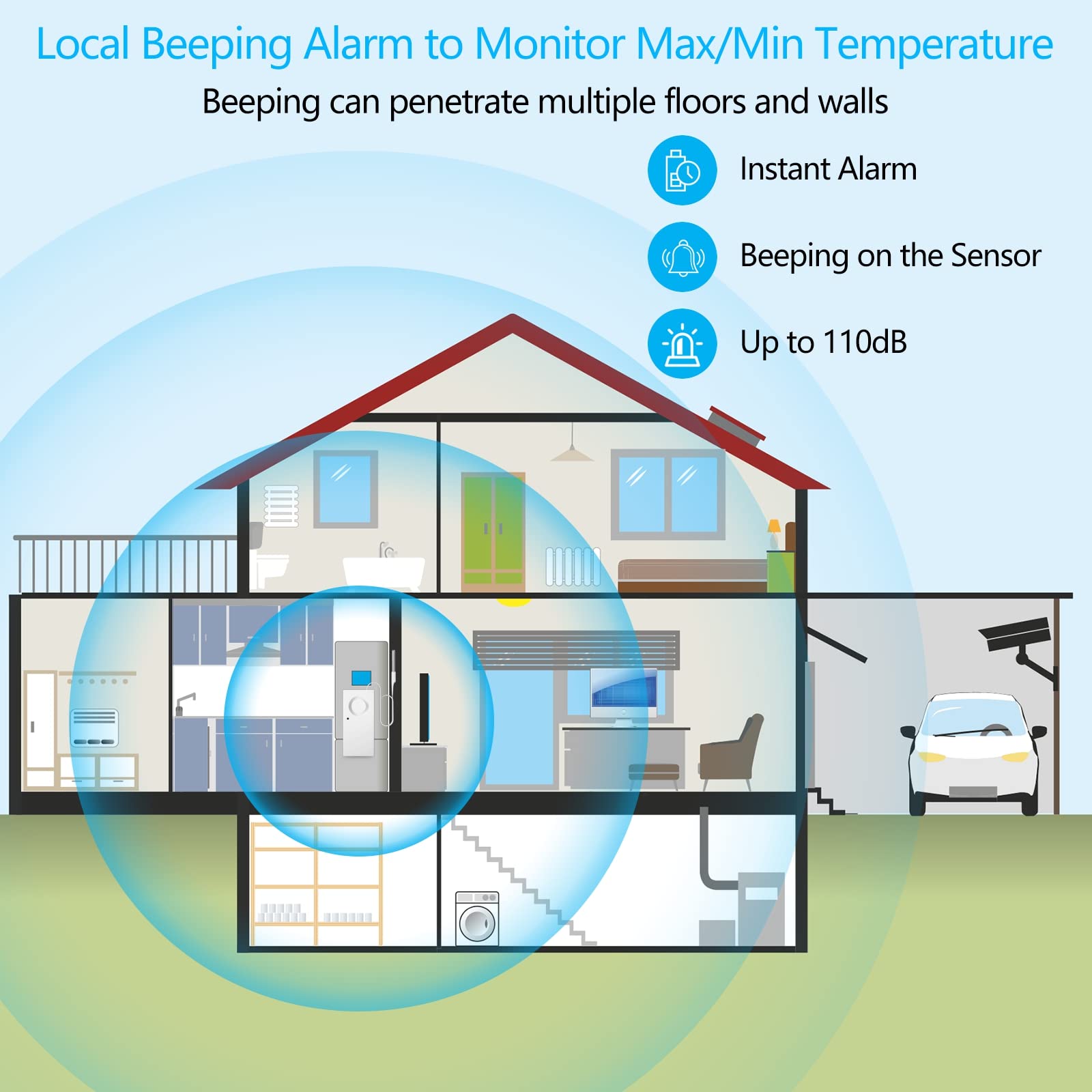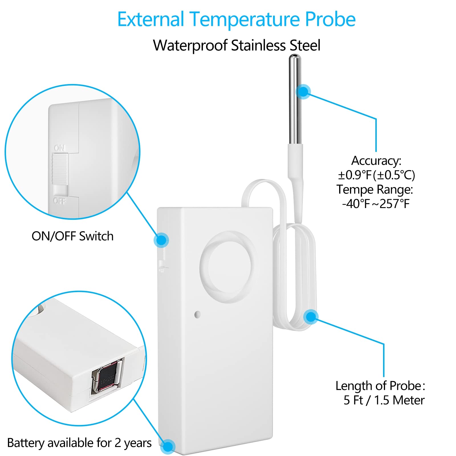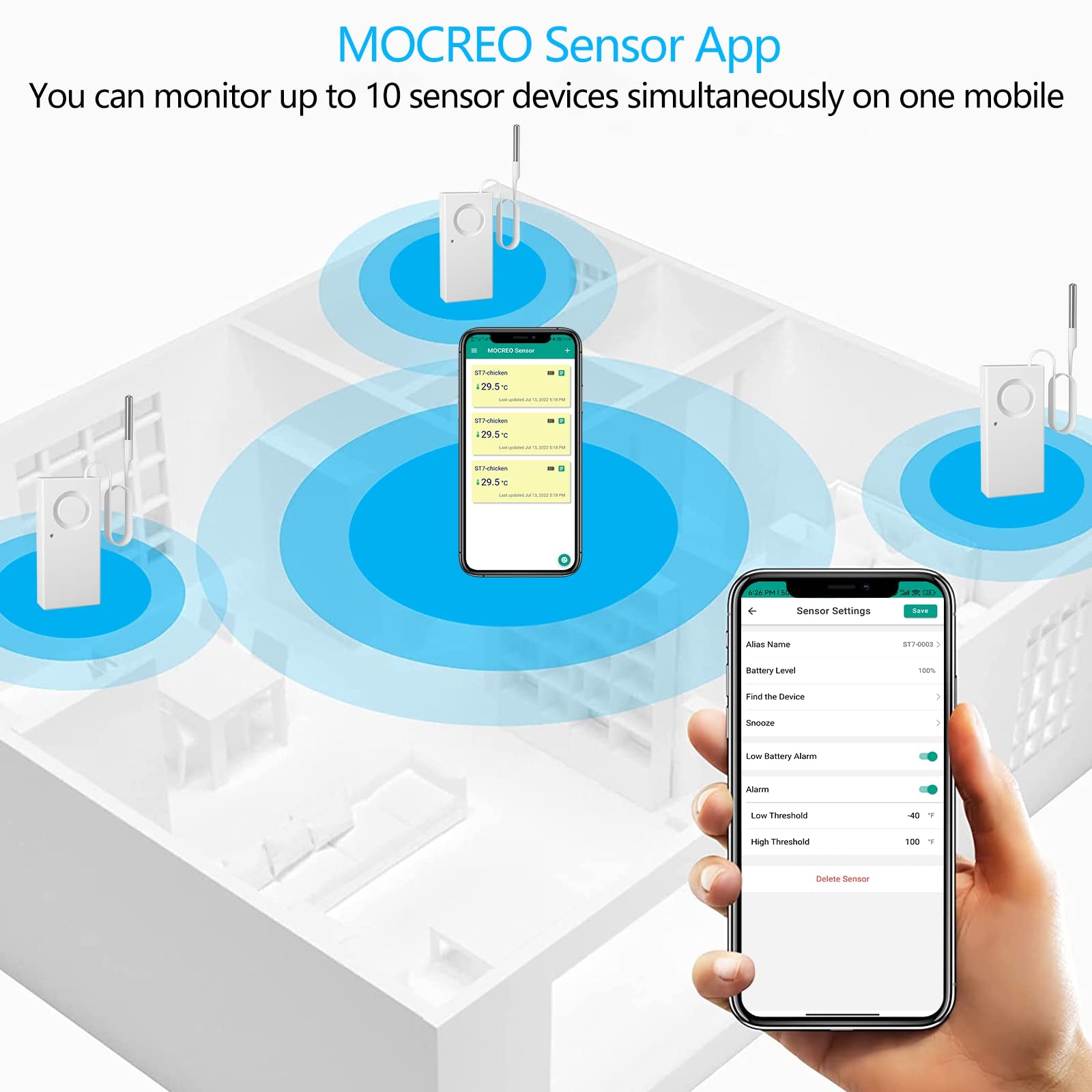 MOCREO Bluetooth Freezer Alarm Thermometer, 110dB Loud Alarm, 32000 Points Temperature Data Logger, CSV Export, for Refrigerator, Fridge, Pharmacy Vaccine, Deep Freezer, Cold Chain