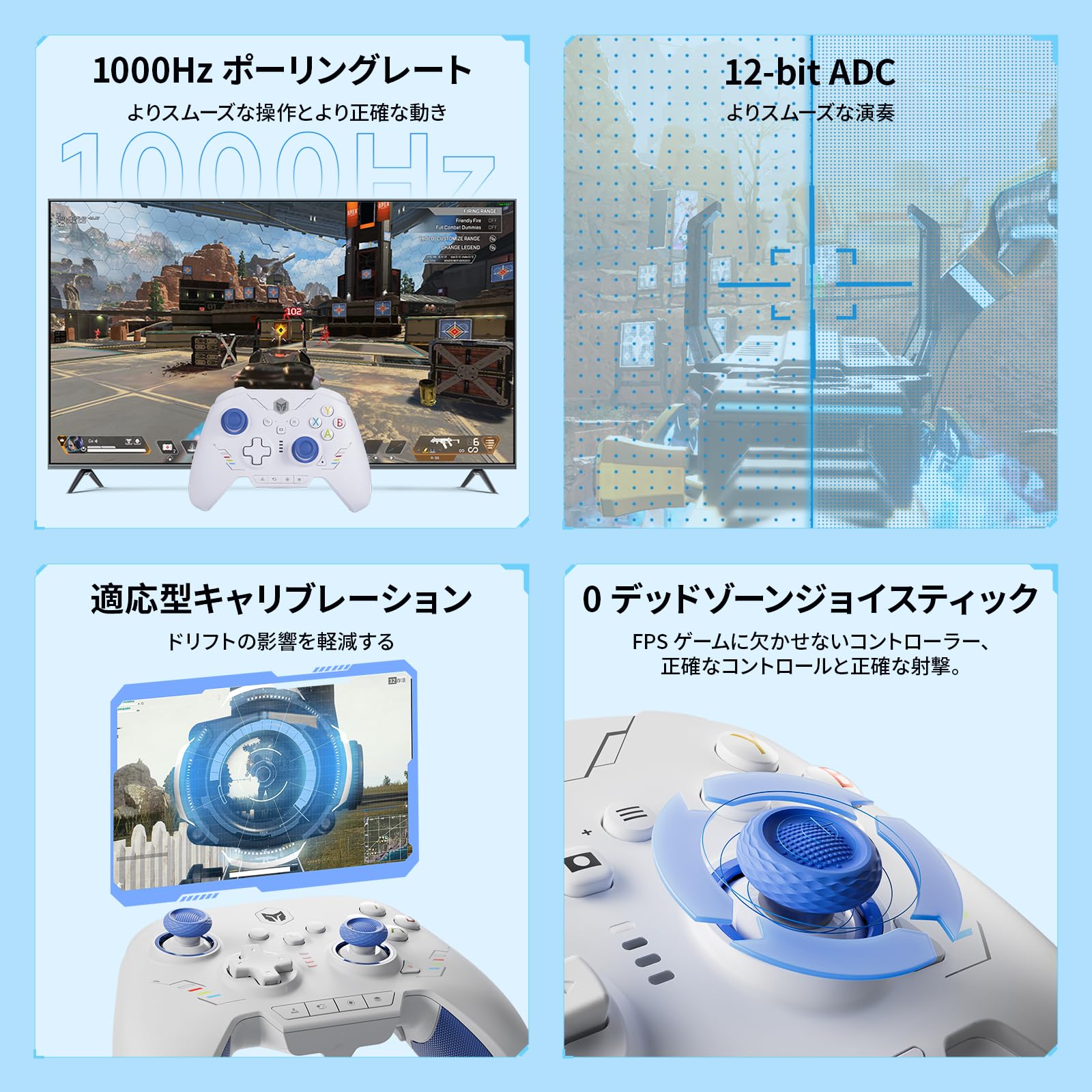 【12-bit ADC Joysticks】12-bit chip & 2000 levels axis resolution operate games more smoothly. There are 3 sets of joysticks for Rainbow 2 SE controller, short/middle/high. BIGBIG WON adaptive calibration reduces the drift to the lowest without any operation. 【0 Deadzone】Gaming controller for FPS gaming ensures precise control and accurate shooting.【4-way &8-way D-pads】4-way D-pad is designed for every game, and 8-way D-pad is specially for For FTG Games. Choose the configuration you like.