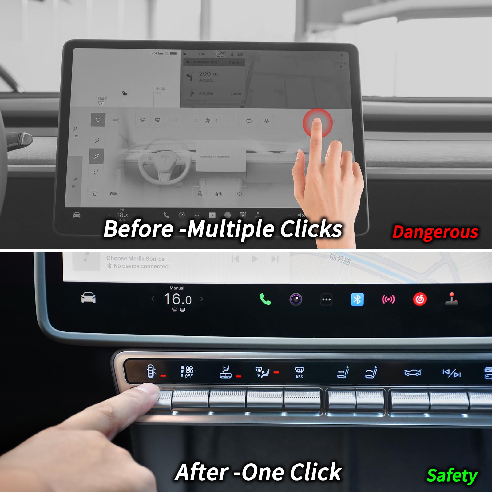 [Safe Driving] - With physical buttons, the driver can manage the air conditioning adjustment and defogging system with one click, making driving easier and safer. Also, if you prefer the original car touch keys, it's still there.
