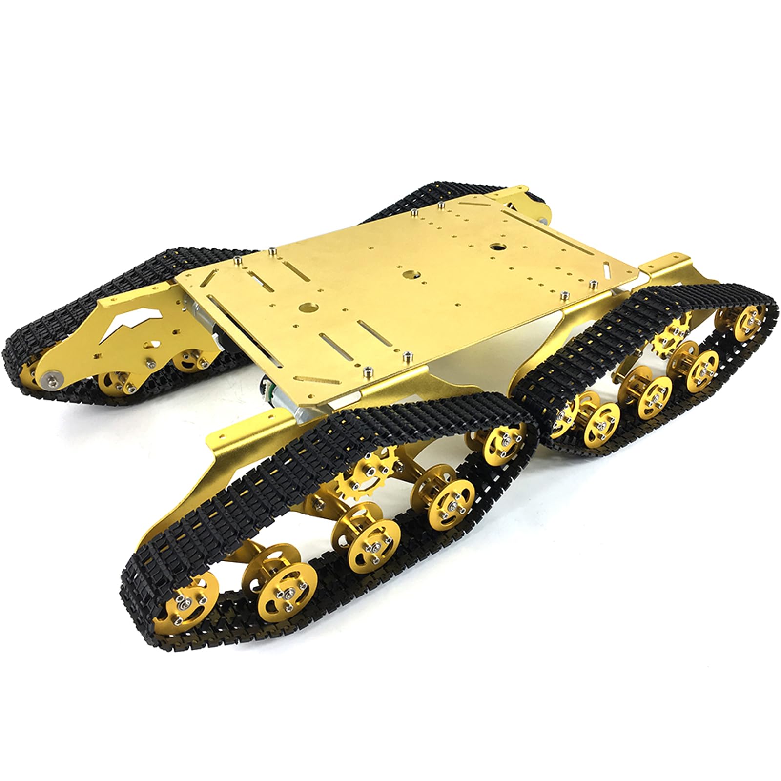 This TS900 rc tank chassis kit has shock absorption function, cause the suspension on it can transmit all the forces and moments between the wheel and the body, such as supporting force, braking force, driving force, etc., to relieve the impact load transmitted from the uneven road surface to the body, and to reduce the vibration caused by the uneven road surface. And with the wide track wheel design, this robotic moving platform can run on most terrains, like marble, sand, gravel, grass, mud, etc. Many robot starters love to choose this smart robot moving model as their diy robot beginning kit.