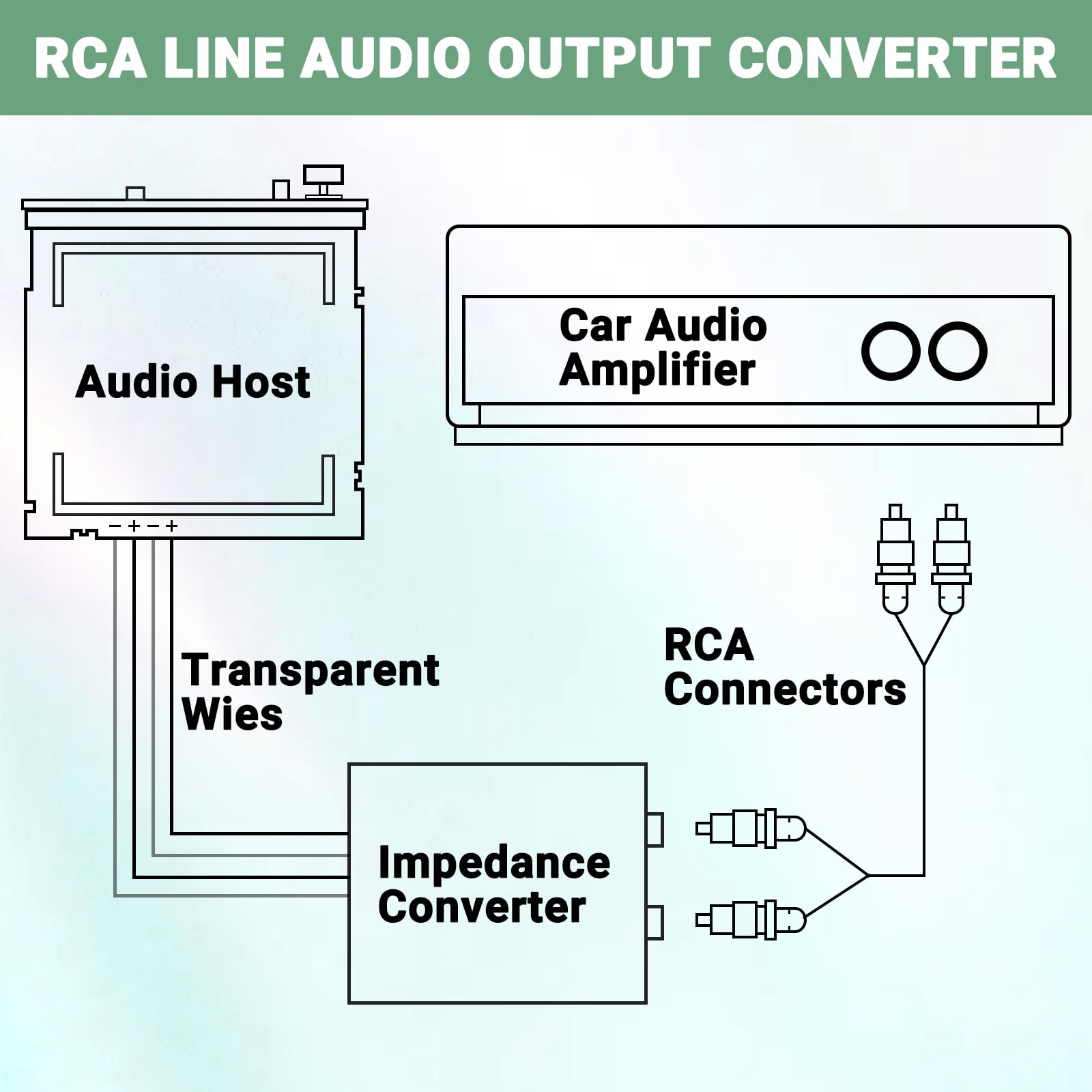 Features RCA output, this high to low impedance converter is used for the impedance convert of the added audio amplifier when the car audio has not RCA output.