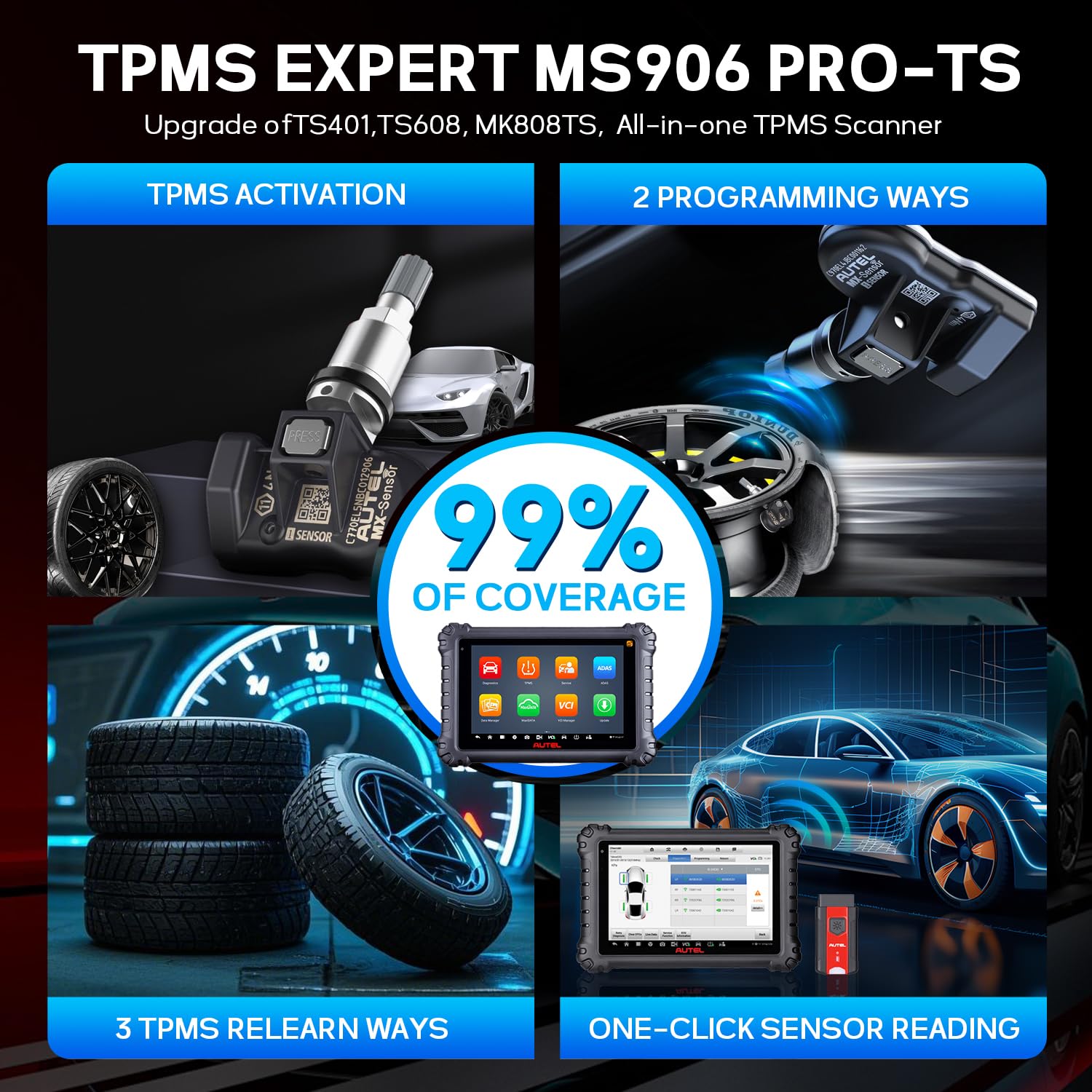 Perfect Combination of MS906PRO & TS601 holds complete TPMS functions: sensor activation, Autel sensor programming, sensor relearn, TPMS diagnostics, TPMS retrofit, etc.