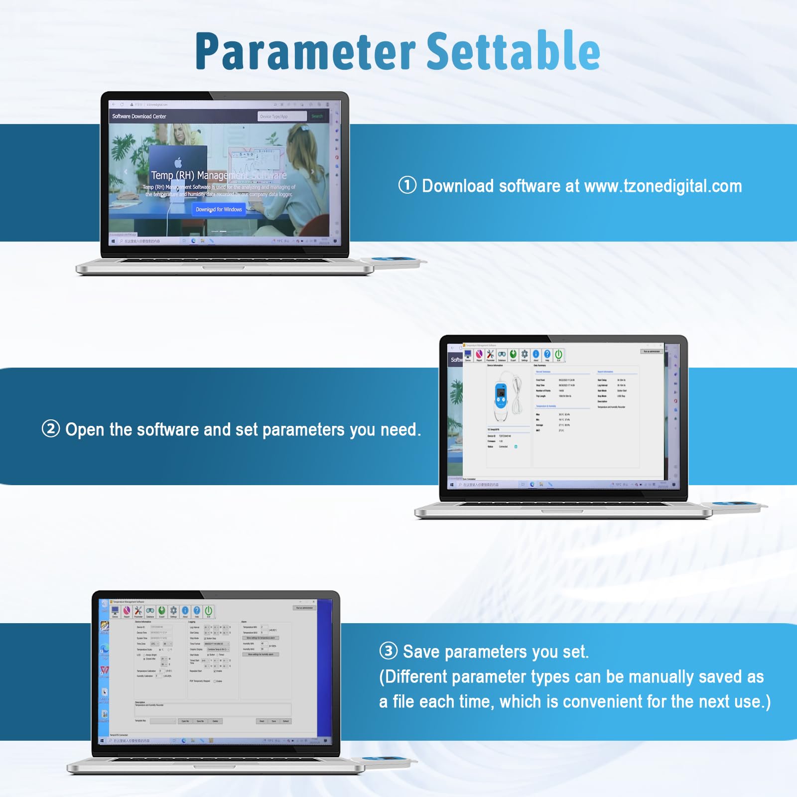• Parameters Settable: With the free data management software(Only for Windows),you can set up paramters such as temperature alarm range, logging interval, startup mode, calibration and others; Supports data graph comparison across multiple loggers to help you analyze data