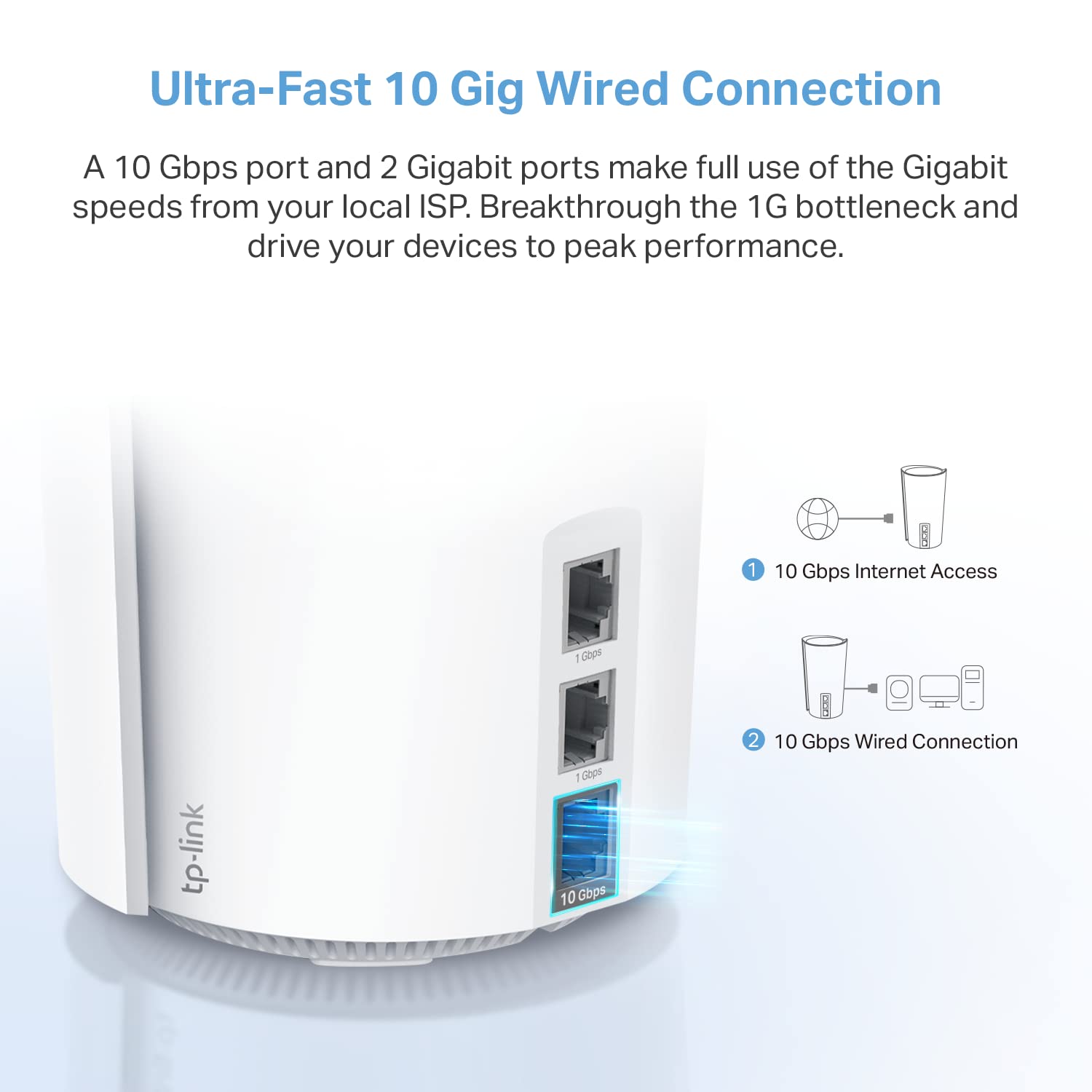 TP-Link Deco Mesh WiFi AXE11000 Tri-Band WiFi 6E Mesh Network System(Deco XE200) - Replaces Wireless Internet Router and Extender, 10Gbps Ethernet Port, compatible with Alexa, 2-pack.