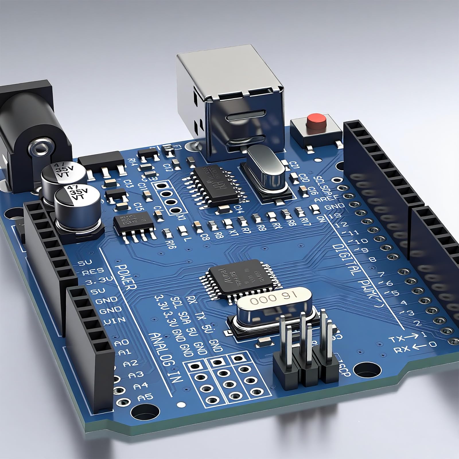 UNO R3 Board ATmega328P with USB Cable(Arduino-Compatible) for Arduino, Input Voltage 7-12V, 16MHZ,14 Digital 1/0 pins Support PWM, SRAW 2KB, Compatible with RPi 4B/3B+/3B/2B/B+/Zero/Zero W
