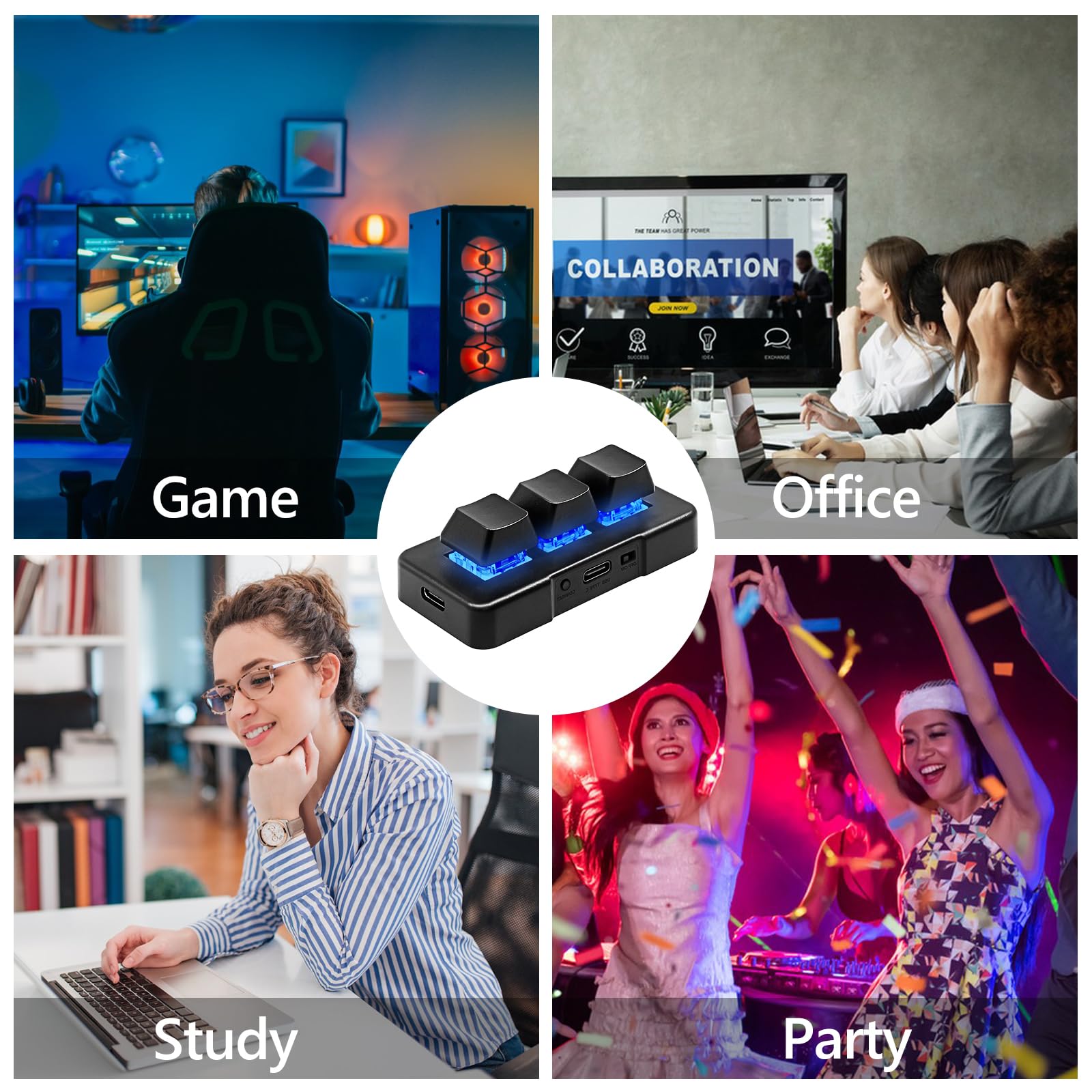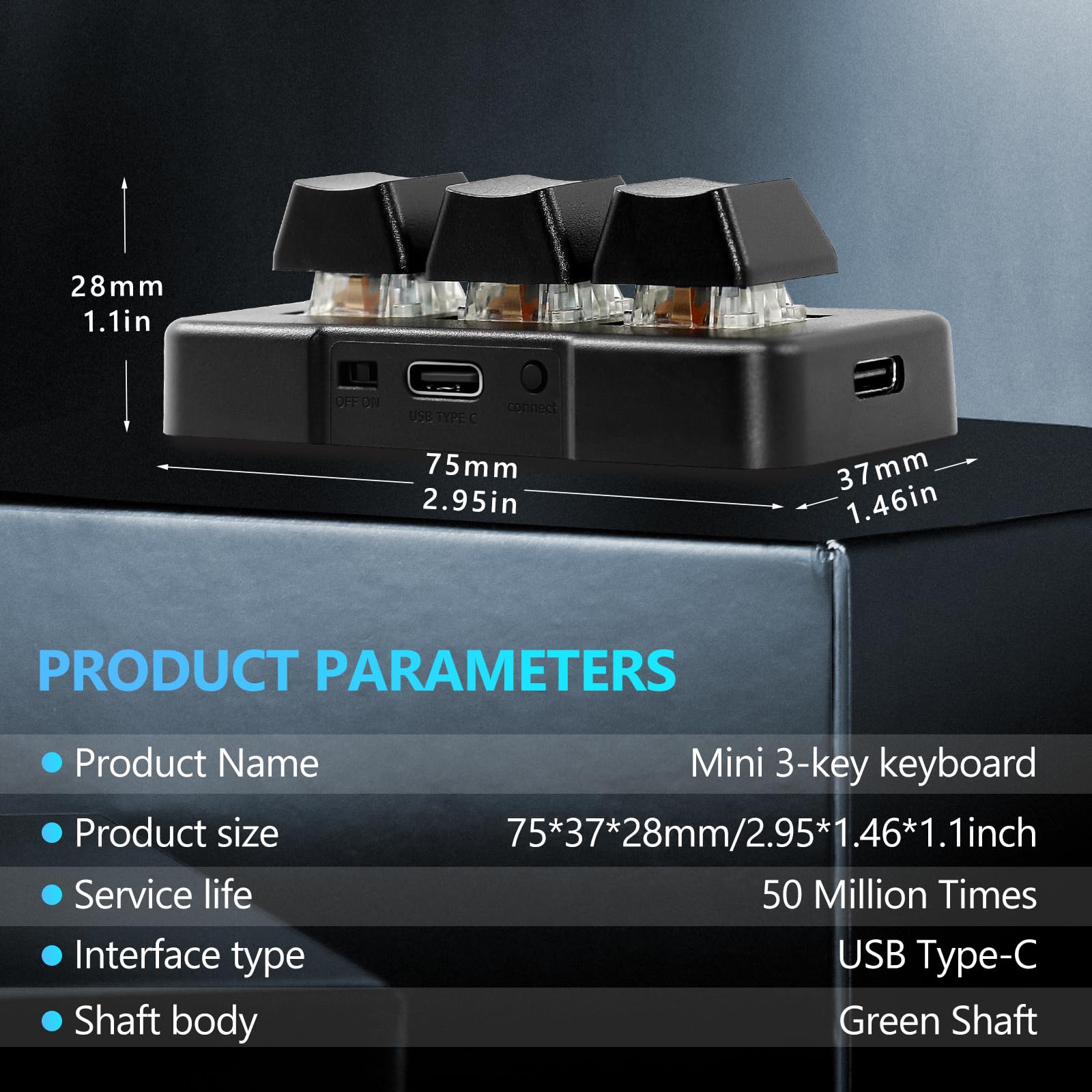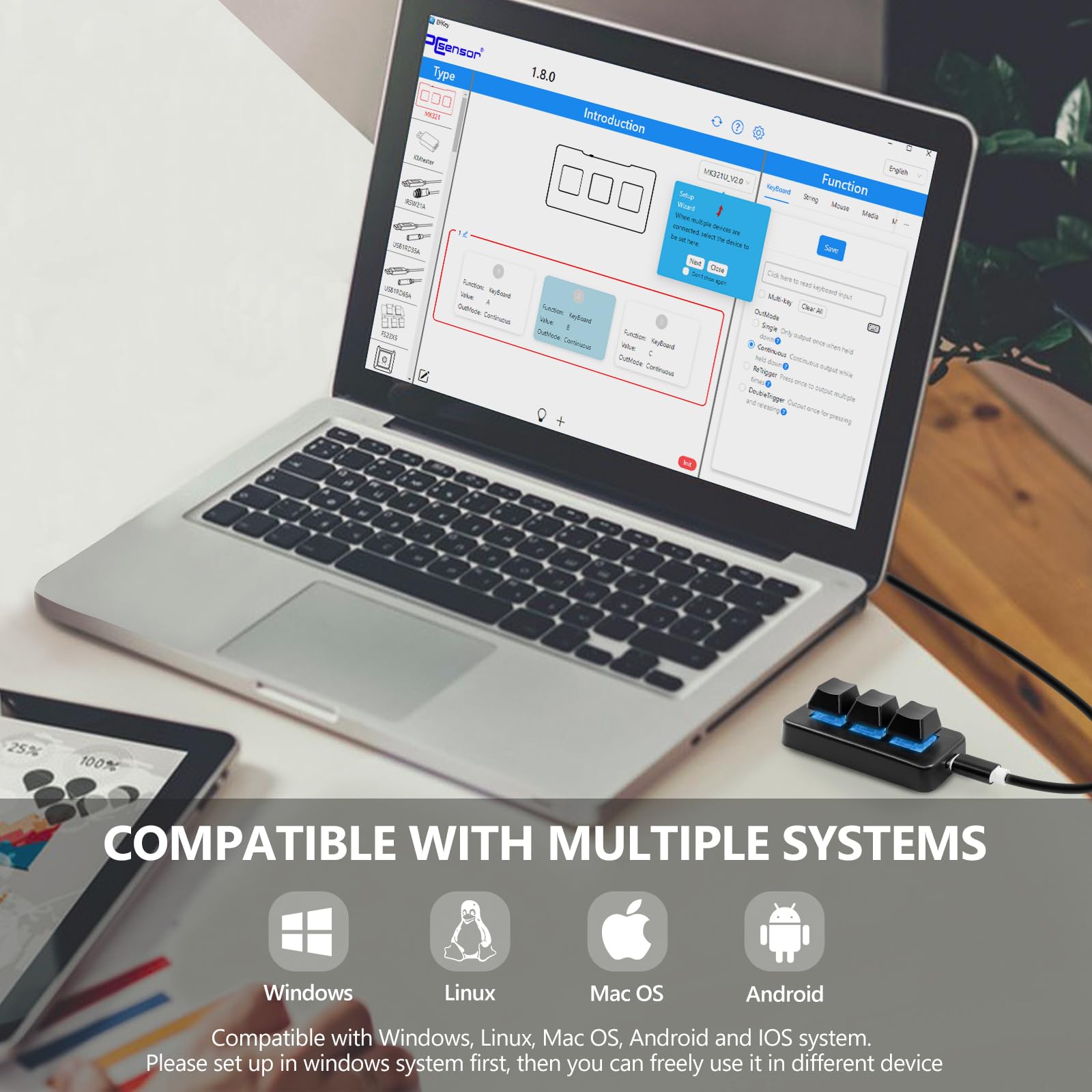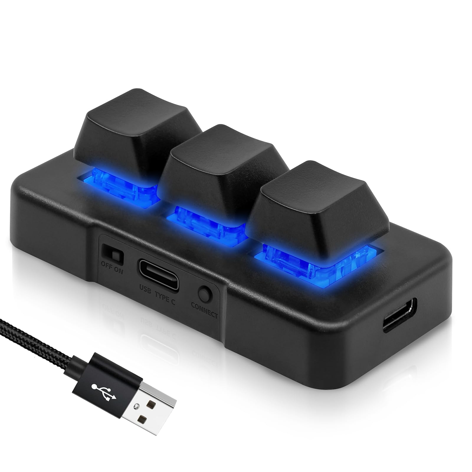 Programmable Keyboard: The mini 3 key keyboard is a macro keyboard, and it is equivalent to a standard USB keyboard or mouse, the keys can be configured via software as keyboard, mouse, page turner, Macro, hotkey, shortcuts, string function. The mini keypad has 3 keys so you need to program them individually. HID device, you can delete the software after configuration.