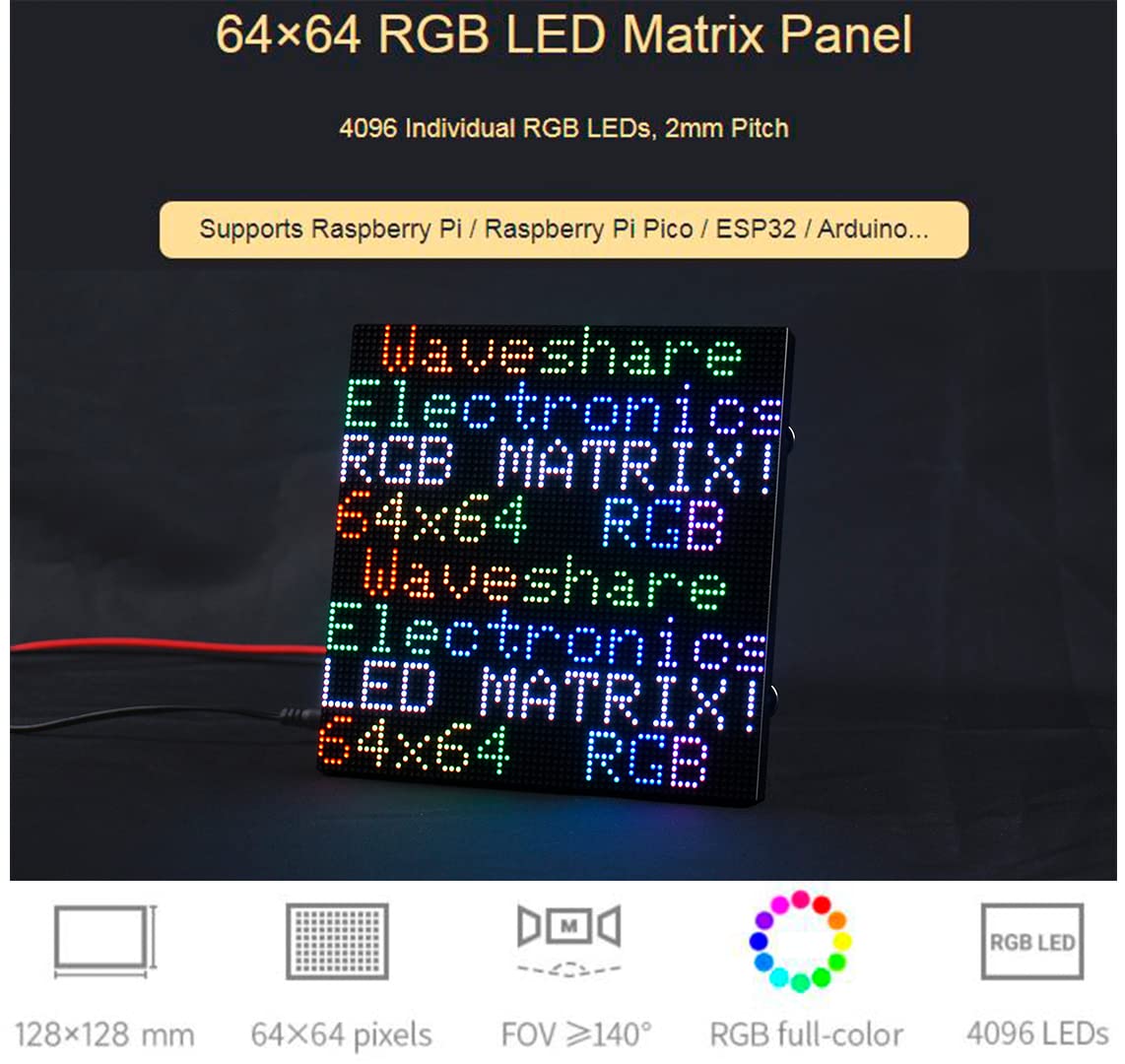 64×64 RGB LED Matrix Panel,4096 Individual RGB LEDs, 2mm Pitch. Compatible with Arduino/Raspberry Pi / Raspberry Pi Pico / ESP32