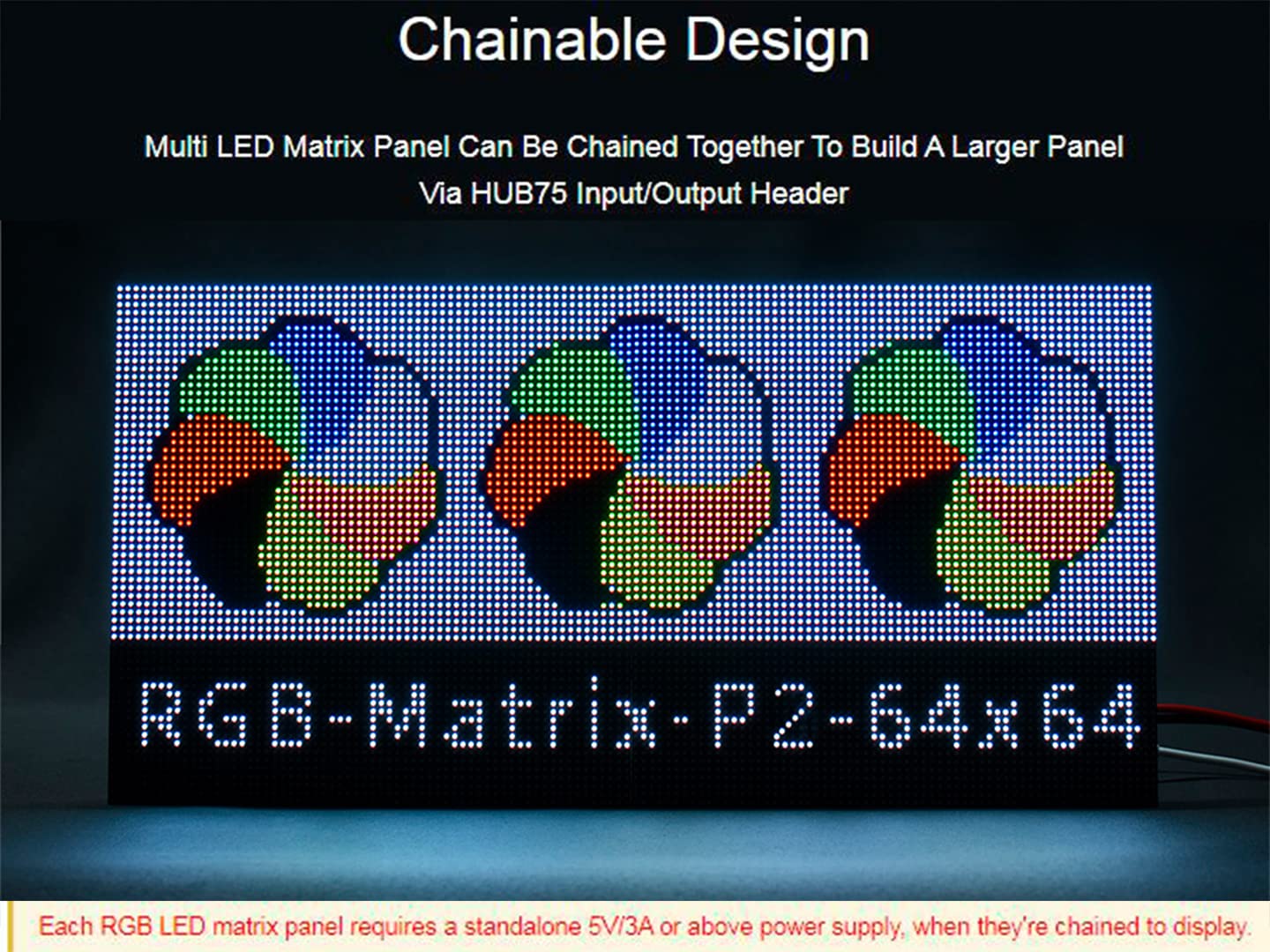 Chainable Design: Onboard two HUB75 header, one for controller data input, one for output, chain support.Multi LED Matrix Panel can be chained together to build A Larger Panel via HUB75 Input/Output Header.