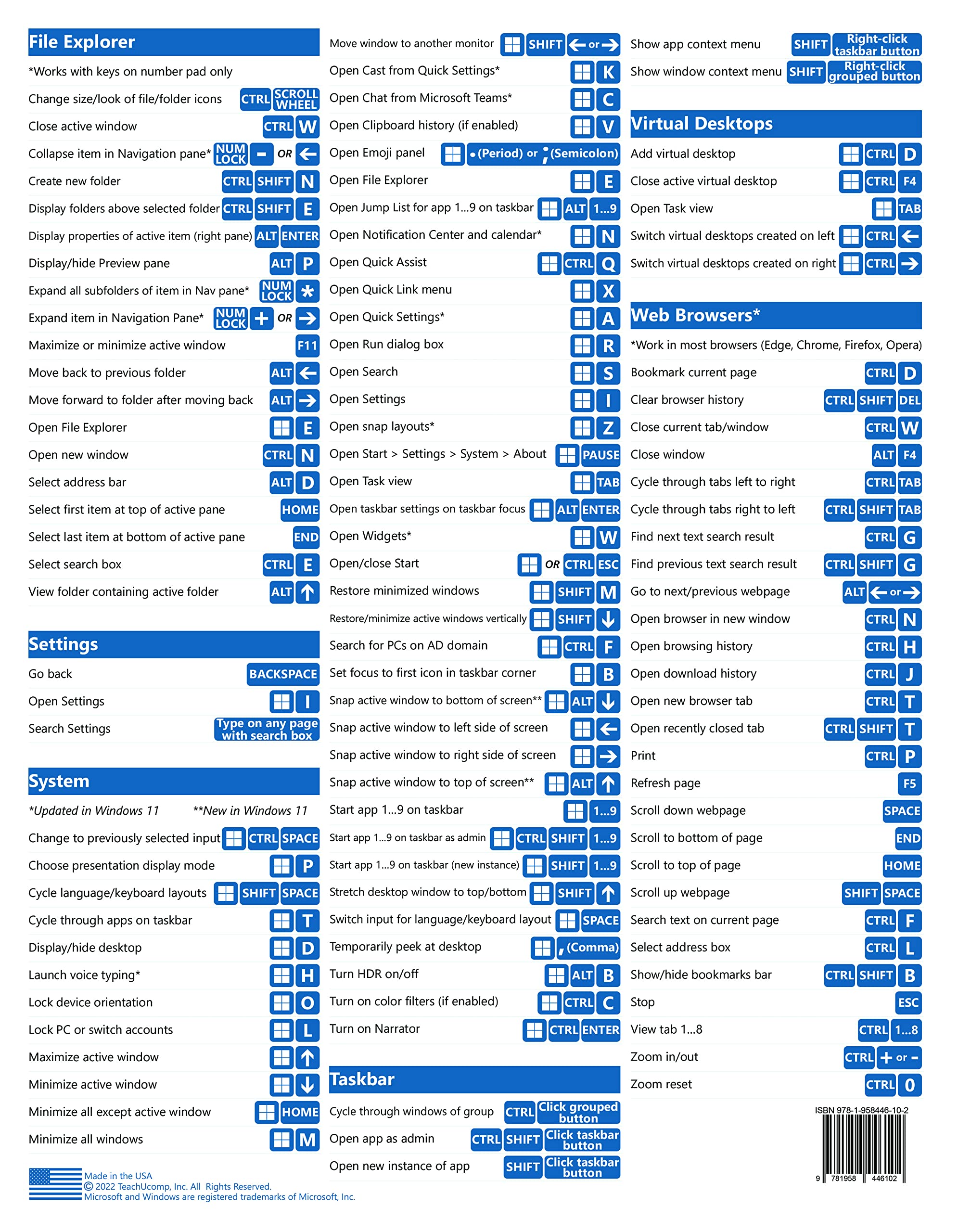 Sản phẩm Windows 11 and 10 Keyboard Shortcuts Quick Reference Training Tutorial Guide Cheat Sheet- Laminated của thương hiệu TeachUcomp Inc. với nhiều tính năng nổi bậc, là một sản phẩm được nhiều khách hàng trên thế giới lựa chọn.