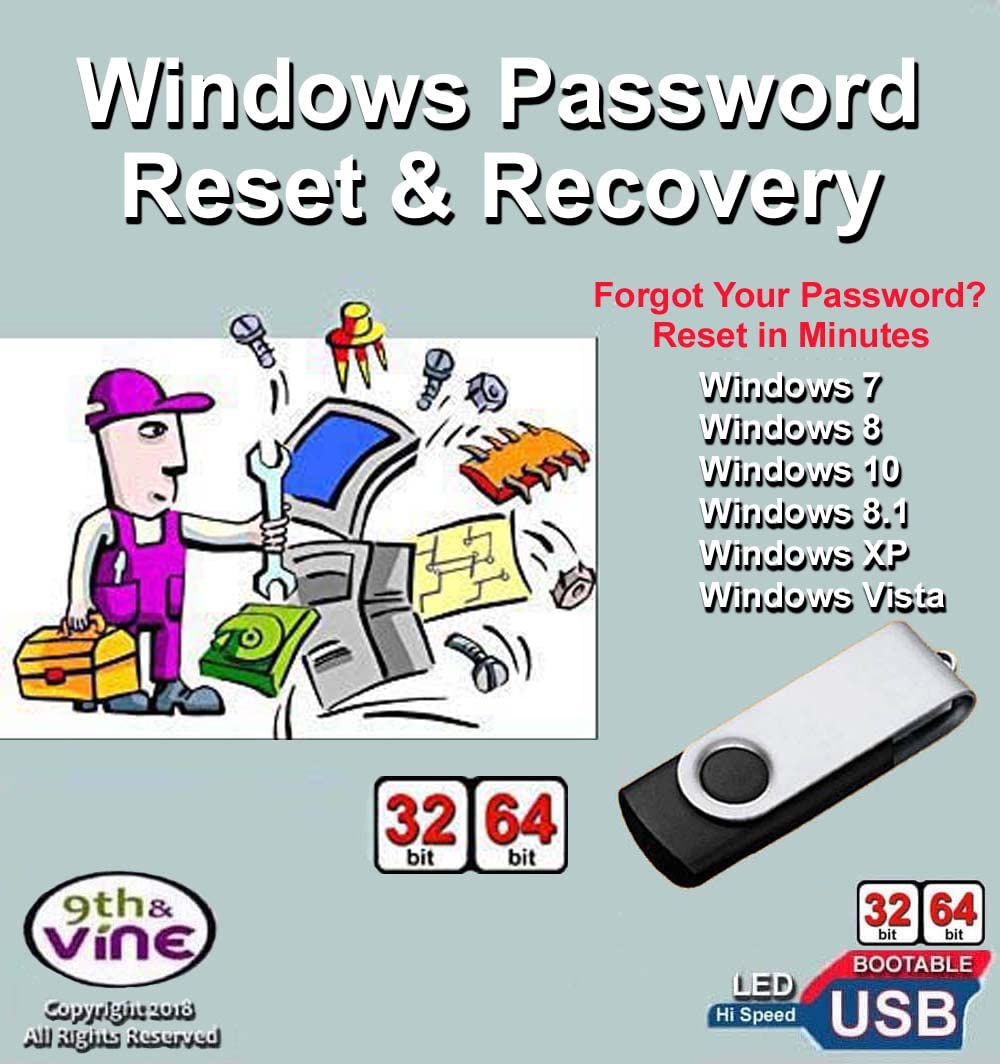 trên thế giới chọn lựa. Sản phẩm 9TH & VINE COMPATIBLE PASSWORD RESET RECOVERY USB FOR ALL VERSIONS OF WINDOWS IN 32-64 BIT. #1 BEST UNLOCKER SOFTWARE TOOL FOR LEGACY BIOS là sự lựa chọn hoàn hảo nếu