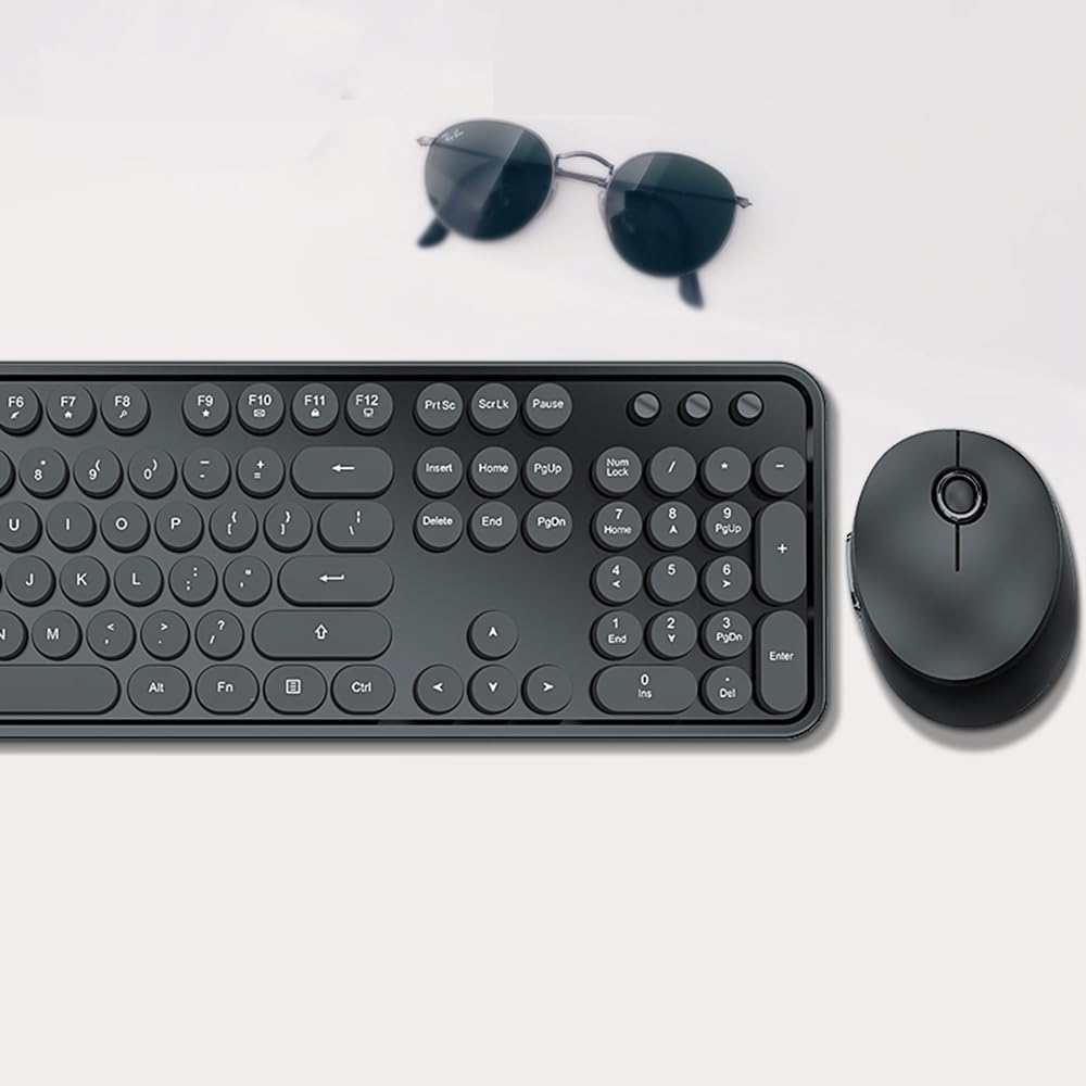 STIVIC Wireless Keyboard and Mouse Combo, Retro typewriter Style Keyboard with Round Keycaps, 2.4GHz Dropout-Free Connection Mouse with 3 Adjustable DPI for Windows Notebook PC
