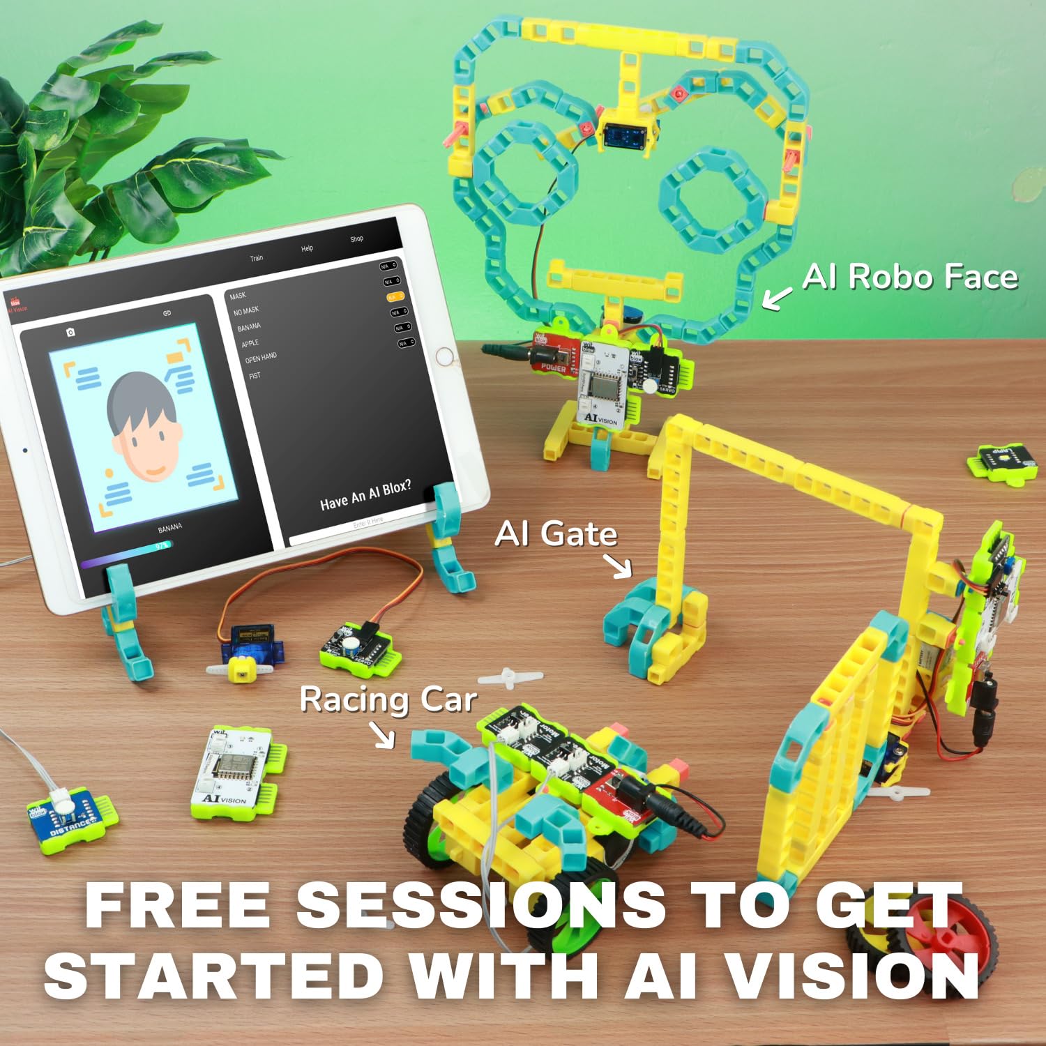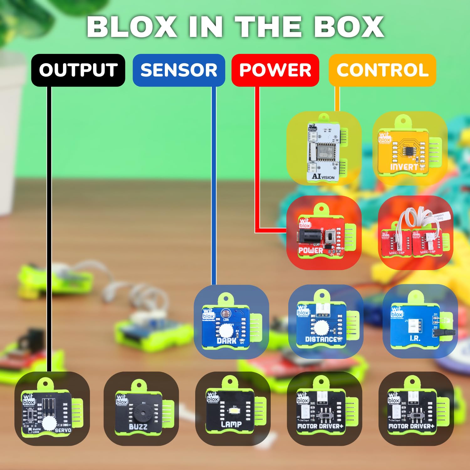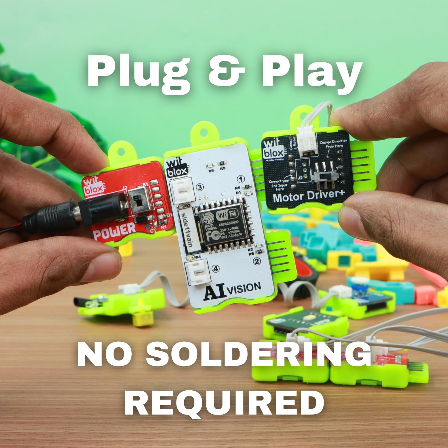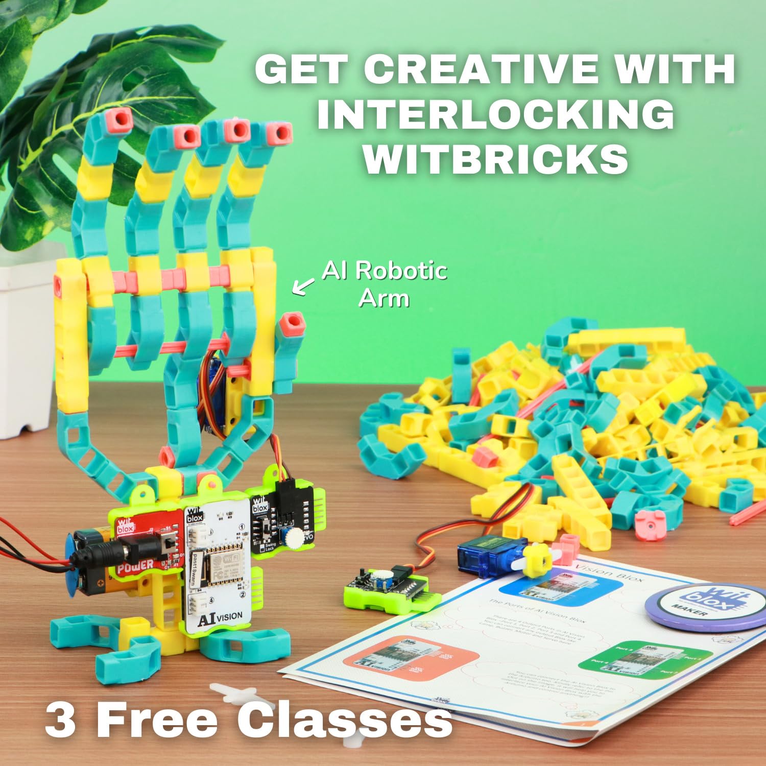 WitBlox Mega Kit is India's #1 Robotics Kit for young innovators. WitBlox AI Kit is ideal for young innovators who want to create experiments and build projects using AI. Take pride in creating your own AI, training it and developing cool innovative projects.