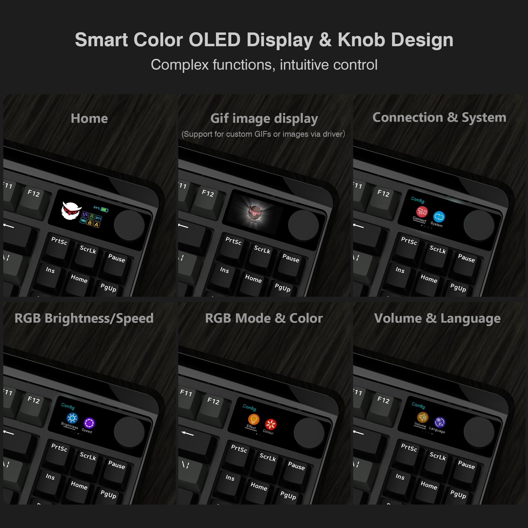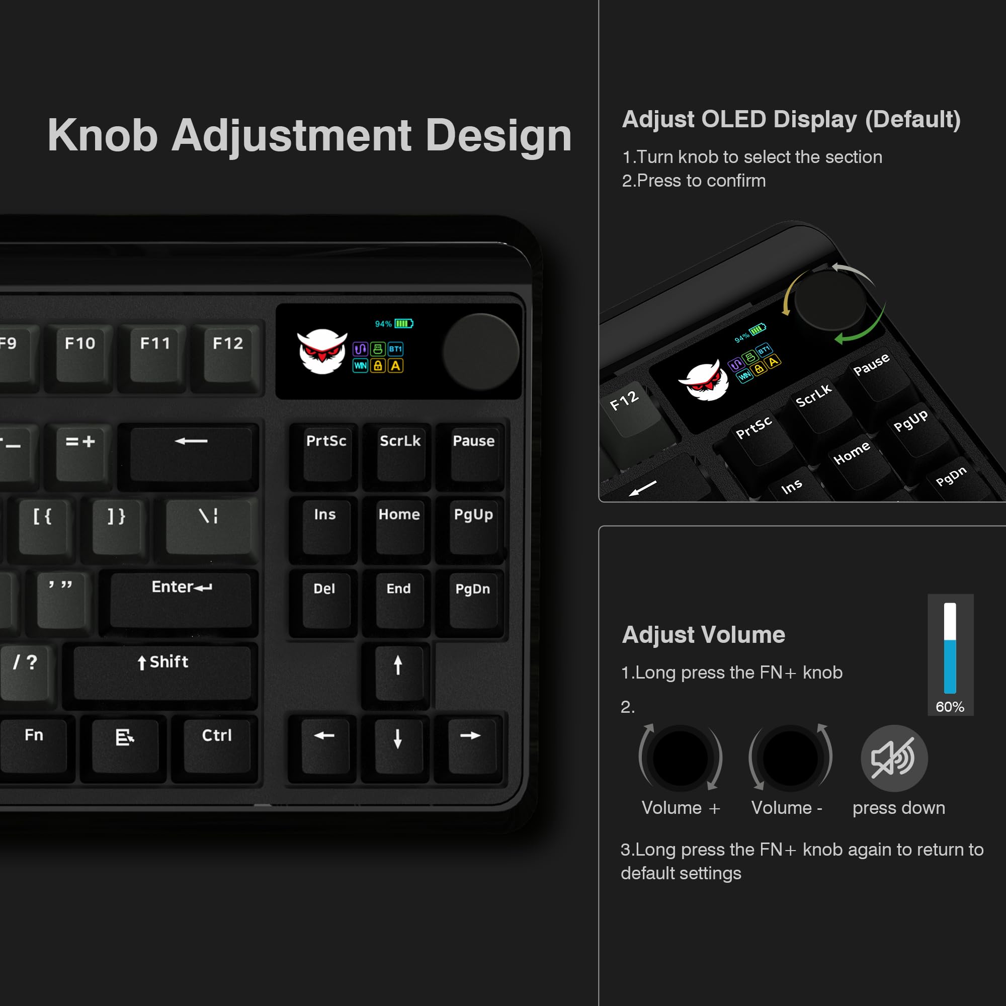 Step 1. Switch Power On. Step 2. Turn the knob to select the connection mode and press the knob to confirm it. Step 3. Turn the knob to the BT1 icon, long press the knob to enter BT1 pairing mode, and the display shows "BT1 Pairing". Step 4 Turn on the bluetooth of computer/phone, then connect the device.