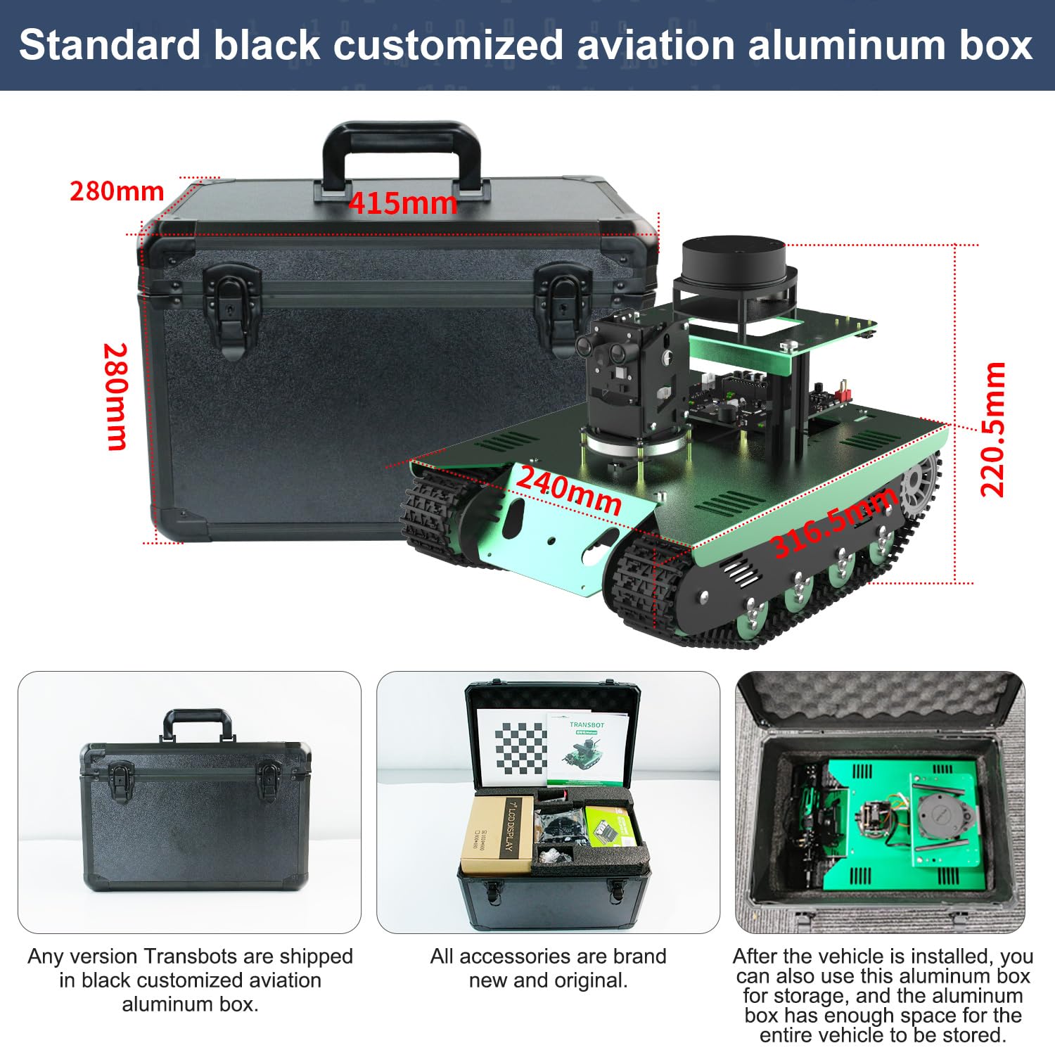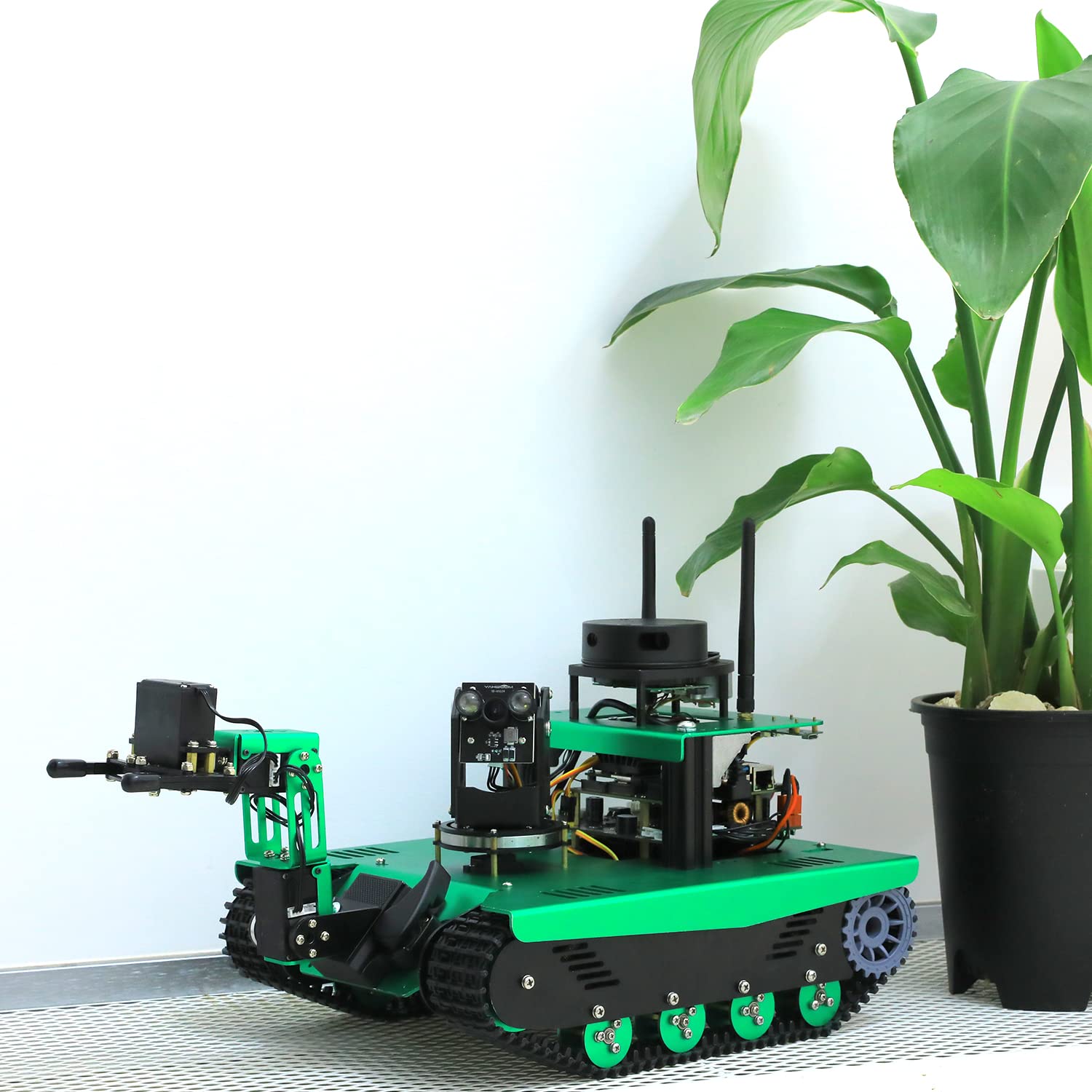 Transbot has highly equipped aluminum alloy frame, anti jam bearing, SLAM lidar, coding gear motor, metal servo,Yaboom professional robot expansion board, somatosensory depth camera (Optional) and quick release manipulator (Optional), which makes the robot have strong ability to cross obstacles.Other, Yahboom provides 64 video tutorials and detailed documentation. As long as you love ROS, it is robot that can 't be missed and professional gift that makers and programmers dream of. Yahboom provides professional technical help.